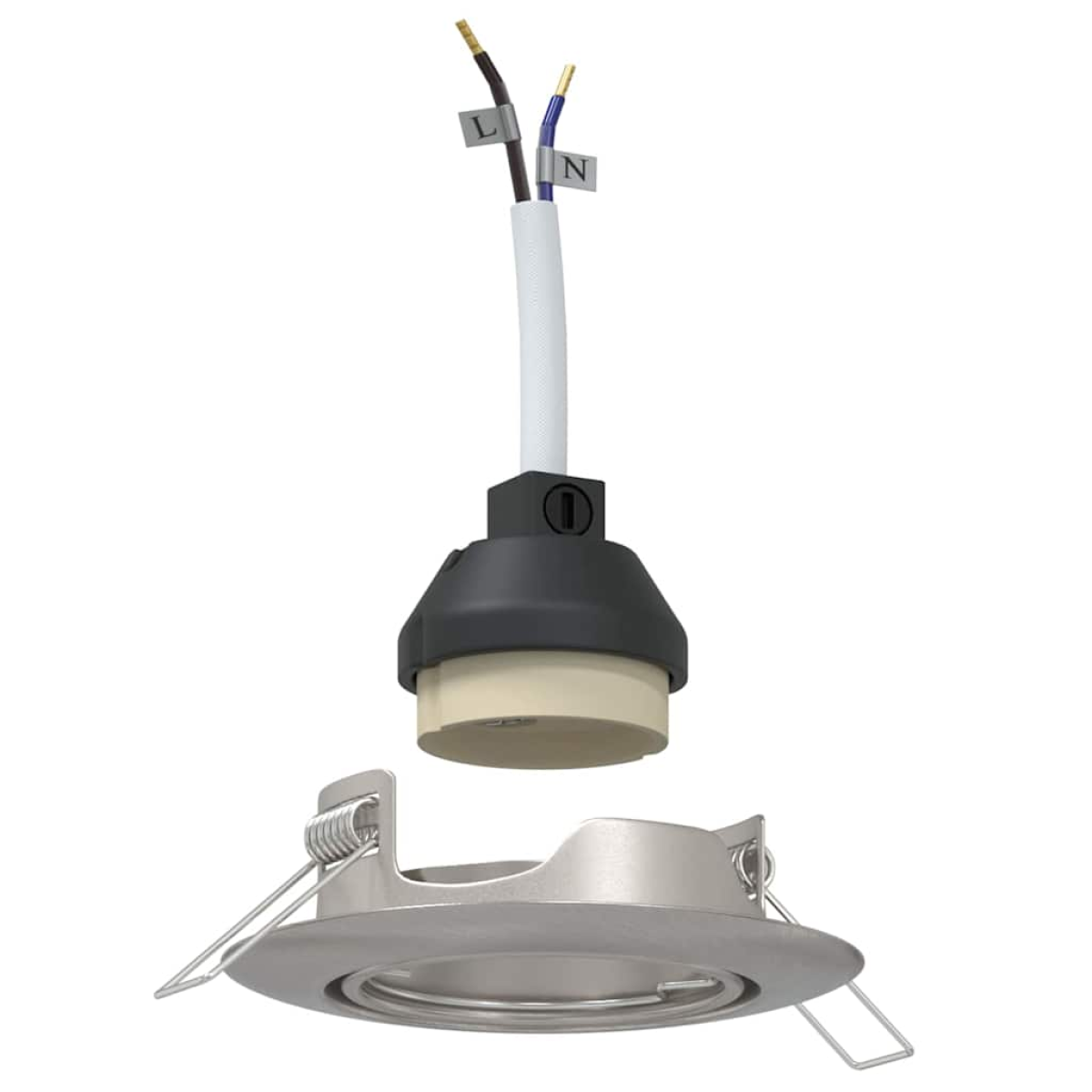 This contemporary recessed spotlight enhances the ambiance of any room with its sleek, minimalist design. Set into the ceiling, it offers a seamless integration that elevates the modern aesthetic. Ideal for living rooms, kitchens, offices, and hallways, its understated style provides a subtle sophistication ideal for discerning homeowners looking to add a touch of elegance. Designed with practicality in mind, the spotlight is not only attractive but adaptable, making it a versatile addition to diverse interior settings. High-Grade Metal Construction: Crafted from robust metal, this recessed spotlight offers unrivaled durability and heat resistance. Metal construction ensures longevity, even under continuous use, affording users peace of mind without sacrificing style or functionality. Its resistance to heat makes it optimal for indoor lighting, providing consistent brightness where needed without overheating concerns. Swivel Adjustability: Featuring a swivel design, this spotlight allows a 30° angle adjustment, making it ideal for directing light exactly where needed. The flexibility provided by this adjustable angle adds to its practical use in varying room setups, allowing users to spotlight art, areas of focus, or general living spaces with ease. Versatile Component Support: With compatibility for GU10 bulbs, this spotlight combines user convenience with modern capabilities. While the bulb is not included, homeowners can select energy-efficient options that align with preferences, offering adaptability in light intensity and energy consumption. The ease of bulb replacement, thanks to a practical spring clip mechanism, enhances user-friendly maintenance. Wide Application Potential: Suited for diverse settings, from cozy living rooms to bustling offices, its wide application range makes this spotlight a unique solution for various lighting needs. Its corrosion-resistant features extend its usage across high-humidity areas without concern of degradation, maintaining a refined, polished look over time. Care and Maintenance: Ensuring the spotlight’s longevity and pristine look is simple. Regularly wiping with a dry cloth prevents the build-up of dust and maintains its elegant appearance, ensuring it remains a staple in any room for years. This low maintenance requirement complements busy lifestyles, offering enduring charm with minimal effort.