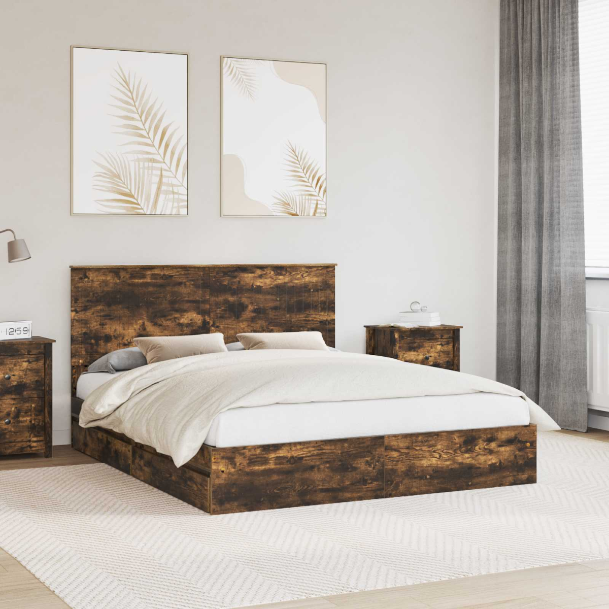 This exquisite Modern Bed Frame is designed with both aesthetics and functionality in mind. Offering a contemporary appeal, this bed frame boasts a meticulous balance of simplicity and practicality, perfect for urban dwellers seeking a sleek yet purposeful addition to their bedroom. Its rectangular shape and engineered wood construction provide a sturdy foundation, while the elegant headboard adds a touch of sophistication to any space. Ideal for those who appreciate modern styles, this bed is a harmonious blend of form and function. Engineered Wood Bed Frame The bed is crafted from premium engineered wood, known for its sturdiness and advantages, providing a reliable and durable base. This material is meticulously selected for its ability to withstand daily use, ensuring a lasting piece that continues to serve as a focal point in any modern home. Built-In Storage Drawers Maximizing under-bed space, the frame features traditional drawers with handle pulls, providing ample room to tuck away extra linens or personal items. This thoughtful design caters to those needing efficient storage solutions, merging style with practicality seamlessly. Effortless Assembly Designed for user convenience, the easy assembly process requires two individuals to use a screwdriver, simplifying the setup process considerably. This ensures that users can enjoy their new bed without the hassle of complex installations, offering a straightforward experience. Modern Minimalist Design With a focus on clean lines and functional simplicity, this frame effortlessly complements various bedroom aesthetics. Its understated charm creates an inviting atmosphere, catering to individuals who prefer a modern touch without overwhelming embellishments. Simple Maintenance Keeping this bed looking pristine is simple, with care instructions that advise using a damp cloth for cleaning. This guidance is easy to follow, guaranteeing that maintaining the bed's appearance is a fuss-free task, ideal for busy lifestyles.