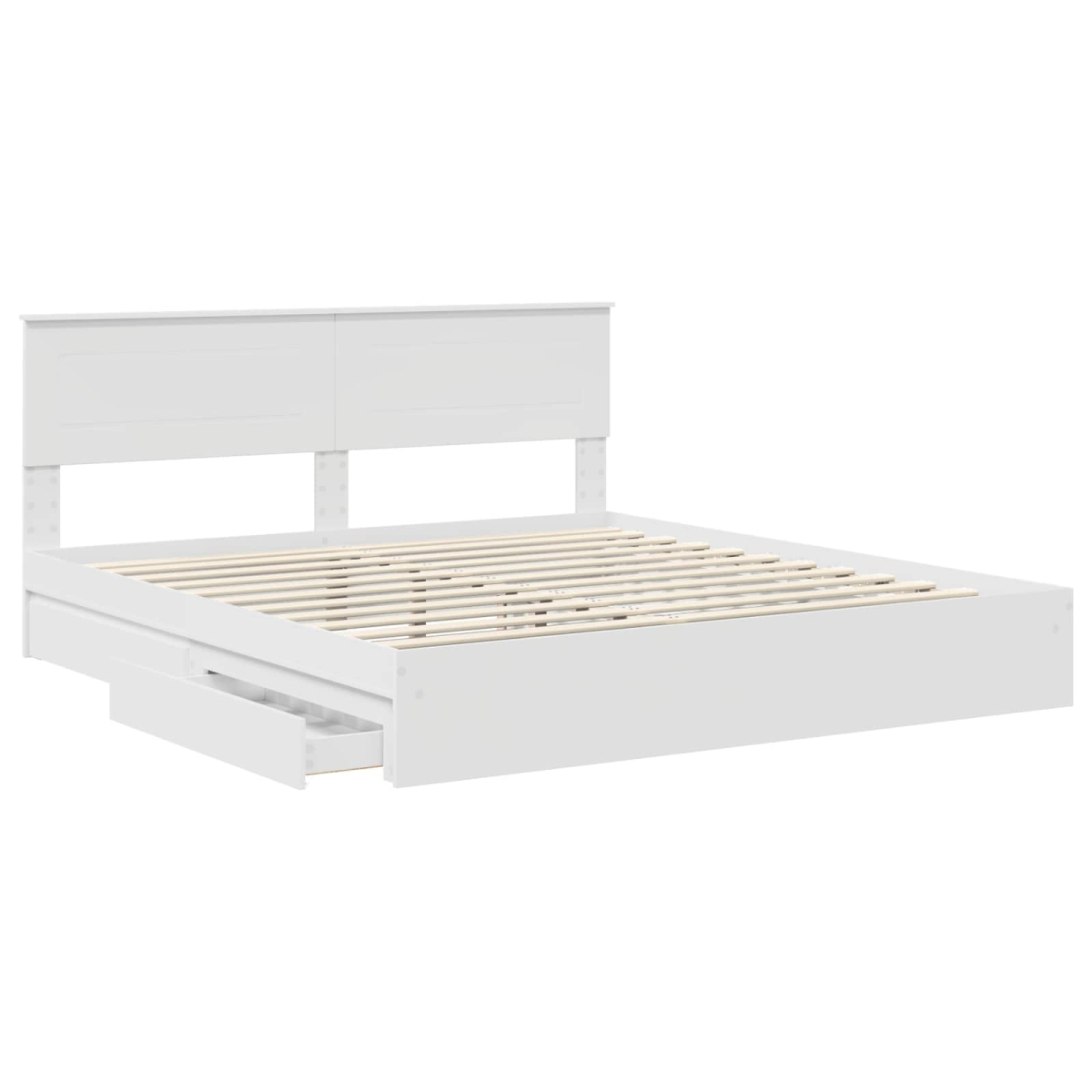 This modern storage bed frame is a fusion of style and functionality, designed to enhance a contemporary bedroom environment. With its minimalist design and clean lines, it brings a touch of modern elegance to your personal space. Perfect for those who appreciate beauty in simplicity, the bed frame offers not just a sleeping space but also an opportunity to stay organized with its convenient storage features. Crafted from durable engineered wood, it promises robustness while maintaining a sleek and non-intrusive appearance—an essential for the modern homeowner galavanting between lush slumber and pragmatic functionality. Material Qualities: The bed is constructed from high-grade engineered wood, known for its resilience and stability. This choice of material ensures that the frame can withstand the test of time, providing a reliable foundation for any mattress. Its engineered nature means it's less prone to warping or cracking, making it an excellent choice for long-term use. Smart Storage: Equipped with traditional drawers featuring handle pulls, this storage bed allows for easy organization of bedroom essentials. The drawers, also made from engineered wood, seamlessly blend into the bed's design, creating a cohesive look and providing ample space for linens, clothes, or other personal items. Sleek Design: Boasting a modern aesthetic characterized by clean lines and minimal ornamentation, this bed frame complements contemporary interiors. Its rectangular shape and understated finish make it versatile enough to coordinate with various room designs and styles, from minimalist to urban chic. Intuitive Assembly: Designed with user convenience in mind, the assembly process requires only a screwdriver and can be completed by two people. The clear assembly instructions aim to make setting up your new bed an uncomplicated process, helping you to quickly transition your bedroom into a functional space. Simple Care Guidelines: Maintaining the appearance of this bed is straightforward. Simply wipe down the surface with a damp cloth to remove dust and keep it looking fresh. Avoiding harsh chemicals ensures not only that the bed's finish remains intact but also that it remains safe for household use over the years.