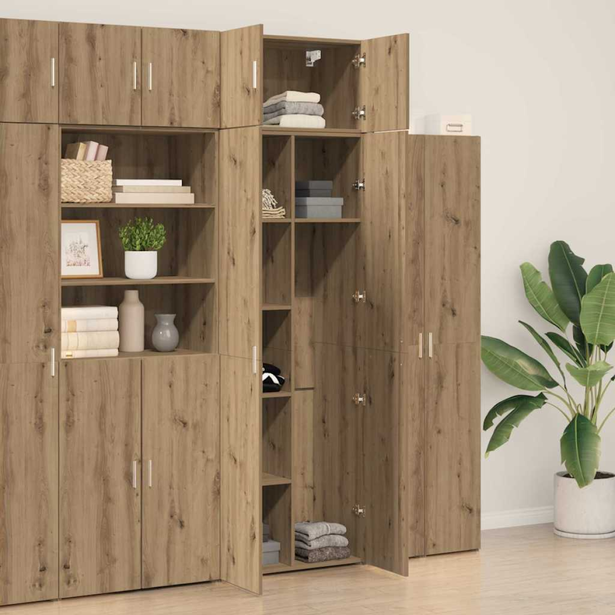 This Engineered Wood Storage Cabinet is a versatile and essential addition to any home, exuding a modern touch with its clean lines and practical design. Its elegant and simple appearance complements various decor styles, making it suitable for a range of living spaces, including living rooms, bedrooms, or even home offices. Designed to bring both style and organization to your home, this storage solution will help maintain a tidy and clutter-free environment, enhancing the overall aesthetic of your interiors. Engineered Wood Material Equipped with engineered wood, this storage cabinet offers remarkable durability and strength. Its material choice not only provides a sturdy structure but is also designed to prevent warping and over time. This choice of material ensures the cabinet retains its aesthetic appeal and functionality throughout its lifespan. Generous Storage Capacity With ample storage size of 70 x 42.5 x 185 cm, this cabinet is perfect for keeping your items organized and easily accessible. The spacious interior can accommodate a range of household items, ensuring everything has its place and is within easy reach. Modern Rectangular Design The cabinet features a sleek, rectangular shape that maximizes space efficiency, making it adaptable to various room setups. Its modern style, characterized by simplicity and minimal ornamentation, adds a contemporary feel to your space. Indoor Use Only Designed exclusively for indoor use, this cabinet is ideal for a variety of home settings, providing both aesthetic and practical value. Position it in any indoor space to maintain stylish organization. Assembly Instructions Assembly requires two people using a screwdriver for convenient setup. Follow the instructions provided for a straightforward building process, resulting in a reliable storage solution that fits seamlessly into your home.
