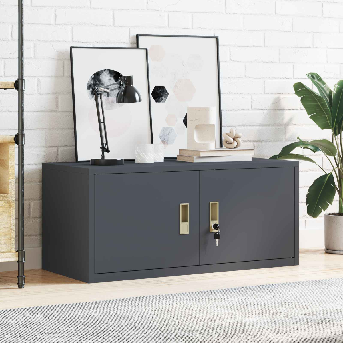 This Modern Storage Cabinet combines sleek, clean lines with high functionality, making it a perfect addition to any contemporary or industrial-themed space. The cold-rolled steel structure not only provides robust durability but also adds a chic metallic touch that is ideal for securing important valuables or organizing office essentials. Designed for versatility, this lockable storage cabinet is suited for various environments, elevating the aesthetic and functionality of your office, study, or home workspace with its well-engineered construction and compact form. Cold-Rolled Steel: Crafted from cold-rolled steel, this cabinet ensures reliable durability and strong resistance against everyday wear and tear. The material choice enhances both aesthetics and longevity, accommodating a wide range of storage needs while maintaining its structural integrity over time. Lockable Doors: The cabinet features lockable doors, providing enhanced safety and security for valuable items or sensitive documents. This feature is particularly beneficial for office environments where protecting privacy and confidentiality is of utmost importance, or at home where child safety is a priority. Industrial &Modern Design: The stylish design merges industrial elements with modern minimalism, enhancing the ambiance of urban lofts or sleek office setups. Its painted finish adds a layer of protection against scratches and adds an appealing sheen to the overall look, making it both functional and decorative. Ample Storage Capacity: With substantial space inside, this cabinet is suitable for storing a variety of items, ranging from office supplies and folders to personal belongings, making organization effortless across numerous settings. Easy Care &Maintenance: Simple to maintain, this cabinet needs nothing more than an occasional wipe with a damp cloth to maintain its pristine appearance. Avoid using harsh chemicals to ensure the finish continues to shine and serve as a stylish focal point for your room.