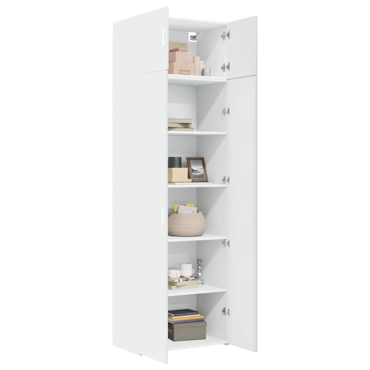 This storage cabinet features two cabinets of varying sizes, offering additional storage space for your home. Stable and durable material: Engineered wood is a durable and stable material with a smooth surface that is resistant to moisture, warping, and splitting, making it a reliable choice for a variety of projects.Ample storage space: This storage cabinet is designed with multiple compartments, providing ample storage space for books, collectables, decorations, or other items you need to store.Space saving: This tall storage unit efficiently utilizes vertical space to maximize storage capacity, making it an ideal furniture piece for small or limited spaces.Wide application: This versatile storage cabinet is a functional addition for multiple spaces, including the bathroom, living room, bedroom, kitchen, laundry room, office, study, and garage. Warning:To prevent it from tipping over, this product must be used with the provided wall attachment device. Good to know:Screws and plugs for inside the wall are not included. We advise to find and use screws and plugs suitable specifically for your walls. If you're not sure, you can consult with a professional. Please read and follow each step of the instructions.