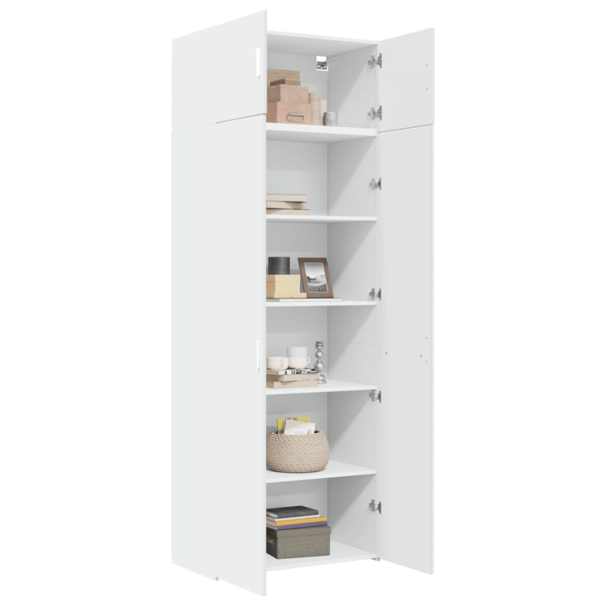 This storage cabinet features two cabinets of varying sizes, offering additional storage space for your home. Stable and durable material: Engineered wood is a durable and stable material with a smooth surface that is resistant to moisture, warping, and splitting, making it a reliable choice for a variety of projects.Ample storage space: This storage cabinet is designed with multiple compartments, providing ample storage space for books, collectables, decorations, or other items you need to store.Space saving: This tall storage unit efficiently utilizes vertical space to maximize storage capacity, making it an ideal furniture piece for small or limited spaces.Wide application: This versatile storage cabinet is a functional addition for multiple spaces, including the bathroom, living room, bedroom, kitchen, laundry room, office, study, and garage. Warning:To prevent it from tipping over, this product must be used with the provided wall attachment device. Good to know:Screws and plugs for inside the wall are not included. We advise to find and use screws and plugs suitable specifically for your walls. If you're not sure, you can consult with a professional. Please read and follow each step of the instructions.
