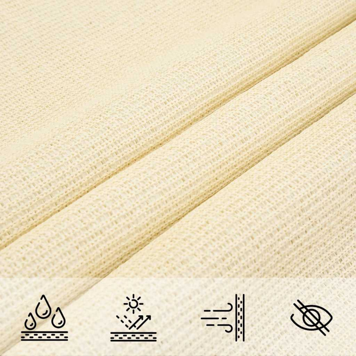 Create a little shelter from the sun, anywhere you want, with this HDPE sunshade. It's the ideal sunshade that can be used in any outdoor spaces such as your garden, terrace, playground or balcony. The sun sail, made from 100% HDPE (high-density polyethylene), protects you from direct sunlight, allows enough wind and is water permeable. The HDPE is specially treated, so it is mould resistant and UV-resistant. The sunshade is easy to assemble with the stainless steel fasteners at every corner and the included ropes. Good to know: This product requires compatible hooks (not included) for proper use. To ensure the correct fit, please consider the combined length of both the hooks and the product when purchasing.