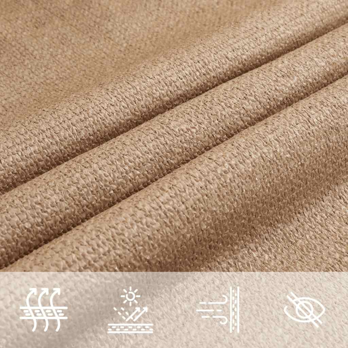 Create a little shelter from the sun, anywhere you want, with this HDPE sunshade. It's the ideal sunshade that can be used in any outdoor spaces such as your garden, terrace, playground or balcony. The sun sail, made from 100% HDPE (high-density polyethylene), protects you from direct sunlight, allows enough wind and is water permeable. The HDPE is specially treated, so it is mould resistant and UV-resistant. The sunshade is easy to assemble with the stainless steel fasteners at every corner and the included ropes. Good to know: This product requires compatible hooks (not included) for proper use. To ensure the correct fit, please consider the combined length of both the hooks and the product when purchasing.