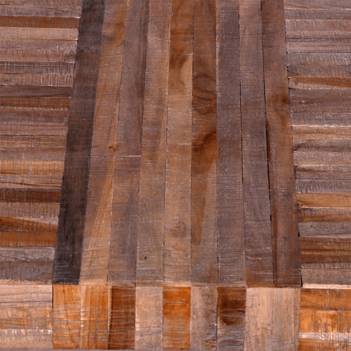 This reclaimed teak table is a timeless accessory for your home. Its solid wood top provides a stable and secure surface on which you can place your drinks, vases, fruit bowls or ornaments. It can be used as a side table. This exotic table is made of reclaimed wood, which means that every piece of furniture is unique and slightly different from the next. Reclaimed wood is solid, stable, durable and beautiful. It is partly handmade, and the craftmanship adds to the unique vintage style of this desk. Great care is taken at every step of the production process, be it recombining, polishing or painting. Relax and enjoy entertaining your family and friends around this unique and original table! Important note: Colours vary from piece to piece, making each of our tables unique. The delivery is random, ensuring the exclusivity and individuality of your product.