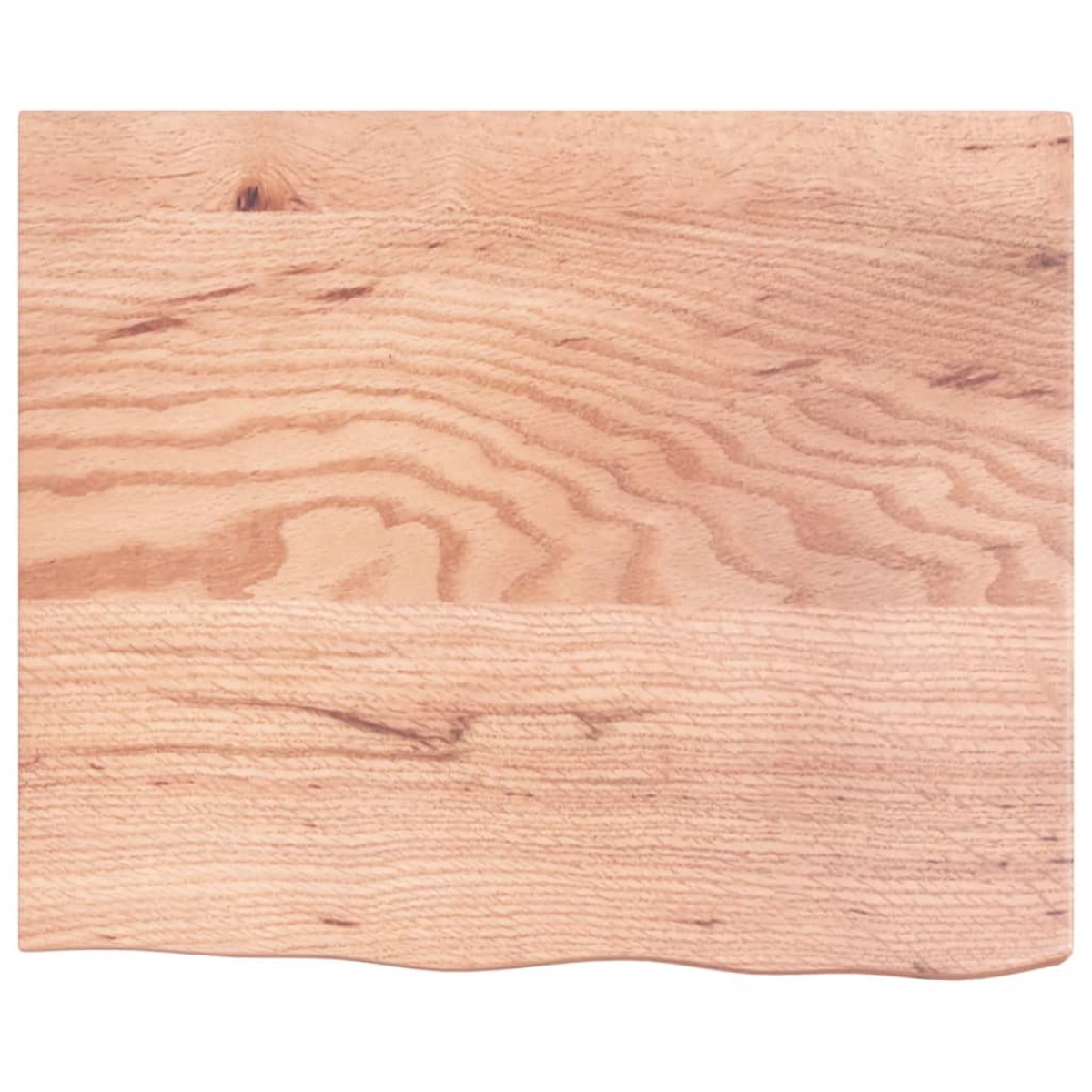 Give a new life to your table with this wooden table top. It is an excellent solution for freshening up your table at home or in a commercial setting. Solid oak wood: The tabletop is made of solid oak wood, which is a beautiful natural material. Oak wood has a medium brown colour and a dense grain, contributing to its unique look.Versatile applications: The replacement table top can be combined with different bases according to your needs.Treated surface: The replacement board has been varnished so it is ready for use as an additional finish is not required.Handmade with live edge: The DIY board is meticulously handcrafted, showcasing a live edge that adds to its natural charm. Every piece of shelf has its own unique character to display. The delivery is random, ensuring the exclusivity and individuality of your product. Good to know:As a natural product, wood may show knots and imperfections that we fill with black fillings to ensure a smooth appearance.