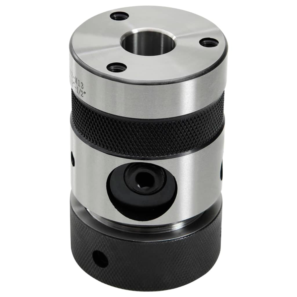 Turn your bench mill, or lathe into a tapping machine with this device. This set includes B16 tapping chuck with MT2 shank, designed for cutting internal threads on boring machines, turret lathes and similar tools. It can tap M2-M13 threads. This set is made of steel, with high hardness, high precision and corrosion resistance. Robust and compact design ensures high stability and accuracy of threads produced.
