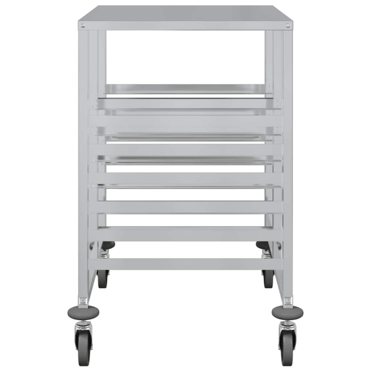 Enhance your kitchen efficiency with the tray trolley, built for durability and effortless cleaning. Durable stainless-steel construction: Crafted from stainless steel, the tray trolley guarantees long-lasting performance and corrosion resistance, making it easy to clean and is ideal for a variety occasions.Flexible and stable mobility: Equipped with four silent rotating castors, including two with brakes, this trolley moves smoothly across various surfaces. The locking brakes provide added stability, keeping the trolley reliably in place whenever needed for precise control.Generous tray capacity: Designed with multiple tray slots to accommodate various heights, the tray trolley offers efficient storage and transport. The generous spacing between supports maximises storage in compact spaces, and it can hold GN containers of sizes 1/1, 1/2, 1/3, 2/3, and 2/8.Safe and secure: With built-in bumpers and a robust design, the tray trolley not only protects walls and equipment but also offers secure and stable handling in fast-paced environments.Easy to clean: The trolley’s smooth stainless-steel surface facilitates quick and easy cleaning. A simple wipe with a damp cloth or mild cleaner removes spills or stains, making it ideal for busy kitchens and food service areas.Good to know:The trays are not included in the delivery.If the GN containers are deeper, fewer containers should be placed in the tray trolley.