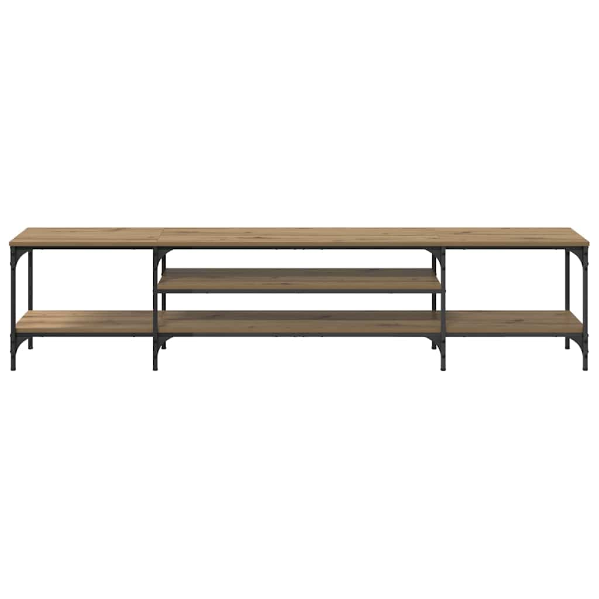 This TV Cabinet, characterized by its rustic style, is the perfect piece for those looking to blend natural rugged beauty with practical functionality. With a rectangular shape and designed for the living room, it serves not only as a TV stand but an organizer for numerous belongings. Its appearance is defined by the rich tones of engineered wood combined with sleek black iron accents, offering a visual foundation that matches various home decor settings. Ideal for families or individuals who appreciate organized spaces, this cabinet melds seamlessly into contemporary, rustic, or traditional interiors. Materials: Fabricated from high-quality engineered wood, this TV cabinet presents a smooth yet textured surface, part of its distinctly rustic allure. The use of engineered wood ensures durability and a long-lasting design. Reinforced by sturdy iron elements, the frame and legs provide robust support to bear everyday use. Included Components: This TV cabinet's configuration features arrow foot legs, contributing to its stability and hinting at design elements typical in traditional styled furniture. With its iron framework, the unit assures a solid foundation while adding to its rustic charm. Features /Function /Design: Engineered for ample storage space, this cabinet accommodates all your multimedia equipment with ease. It's designed with board shelves, efficiently storing items while maintaining their accessibility. The combination of sturdy materials guarantees a durable and functional solution for cluttered spaces. Recommended Uses: Ideally placed in the living room, this piece is suitable for homes looking for space-efficient ways to house entertainment systems. It aligns well with various interior styles, making it a convenient choice for those transitioning or decorating anew. Care &Maintenance: Maintain its rustic charm by wiping down surfaces with a damp cloth. Follow assembly instructions meticulously for a secure setup, ensuring the cabinet is fixed against walls to prevent tipping accidents. No harsh chemicals are required for care, ensuring the long-term maintenance of the cabinet’s surface and structure is kept simple.