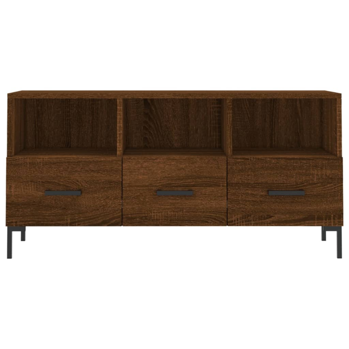 This sturdy TV cabinet is designed to be a focal point of your room with a trendy yet practical design. Sturdy material: The engineered wood is of exceptional quality with smooth surface and also features strength, stability and resistance to moisture. Made of engineered wood, the TV stand is easy to clean.Spacious storage: The TV unit has 3 compartments and 3 drawers which make it an ideal place for storing all your magazines, DVDs and other items.Displaying function: The sturdy top of the media cabinet is ideal for displaying decorative items like photo frames and plants.Iron legs: The iron legs add a calm style to your interior while ensuring stability. Warning:In order to prevent overturning, this product must be used with the wall attachment device provided.