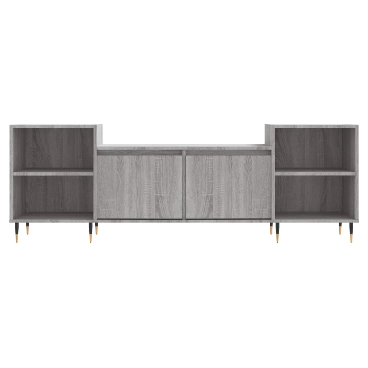 Featuring a stylish yet practical design, this TV cabinet is meant to become a focal point of your room. Sturdy material: The engineered wood is of exceptional quality with smooth surface and also features strength, stability and resistance to moisture.Ample storage space: Equipped with 6 compartments, the TV stand offers ample storage space to keep all your magazines, DVDs and any other items well organised.Sturdy top: The top of the TV unit provides a secure surface to display decorative objects, photo frames, or potted plants.Practical doors: Keep your essentials free from dust by hiding them behind the doors of the media cabinet. Warning:To prevent it being overturned, this product must be used with the provided wall attachment device.