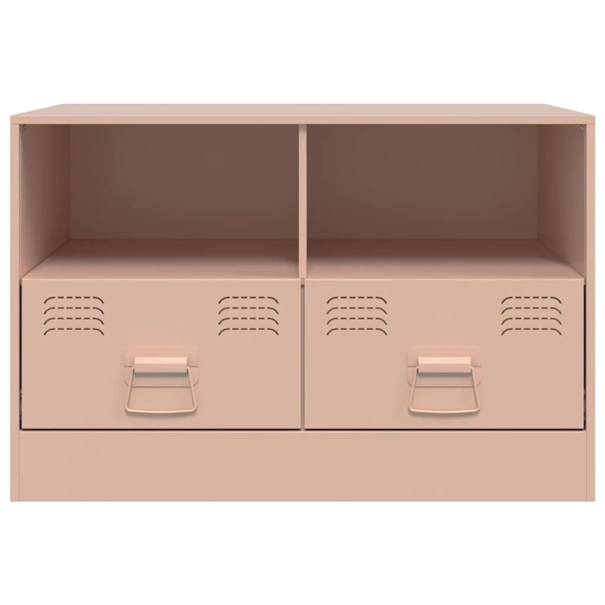 This sturdy TV cabinet is designed to be a focal point of your room with a trendy yet practical design. Stable material: The TV cabinet's frame is made of cold-rolled steel. Cold-rolled steel is a kind of low-carbon steel produced by a "cold rolling" method and processed at near normal room temperatures. Cold-rolled steel has a smoother surface, greater strength, and higher precision.Ample storage space: This cabinet offers handy storage space for keeping your magazines, books, remote controls and other small items well-organised and within reach.Easy to maintain: The table is easy to clean with a damp cloth and requires less maintenance.Practical handle: The TV cabinet comes with 2 handles that make it easy to open and close the cabinet while also adding to extra beauty.