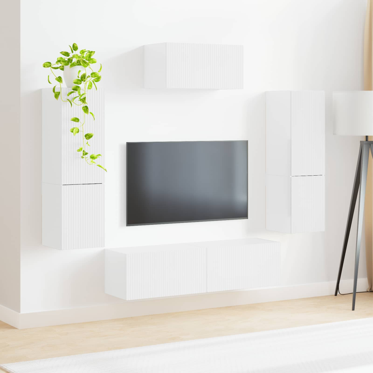 This Modern TV Cabinet Set is a stylish addition to any living room, combining functionality with contemporary aesthetics. The sleek, wall-mounted design creates a streamlined look, making it an incredible space-saving solution. Constructed from engineered wood, the cabinets offer clean lines and minimal ornamentation, making them versatile enough to complement a wide range of interior designs. Perfect for urban living spaces, this set caters to those looking to enhance their rooms with an eye-catching yet practical fixture. The spacious storage options ensure all your media gadgets remain neatly organized. Material Excellence: Crafted entirely from engineered wood, offering both durability and a modern aesthetic. This material choice allows for a smooth, clean finish that complements any contemporary setting, making it a reliable option for long-term use. Space Saving Design: Featuring a sophisticated wall-mounted structure, these cabinets provide an excellent solution for maximizing floor space. Perfect for compact living areas, they deliver one seamless unit that brings organization without overwhelming your decor. Variety in Structure: The set includes different sized cabinets that can cater to specific storage needs. Whether used to accommodate media consoles or store personal items, the diverse sizes enhance versatility and functionality. Stylish Simplicity: Characterized by minimal ornamentation and clean lines, this set embodies the modern design ethos of "less is more." Ideal for those seeking to maintain a clean, uncluttered room aesthetic. Assembly Requirement: This set requires two individuals to assemble using tools like a screwdriver, drill, hammer, and measuring tape. Once installed, the wall-mounted design offers added stability and safety, ensuring it remains a permanent fixture in your living space.