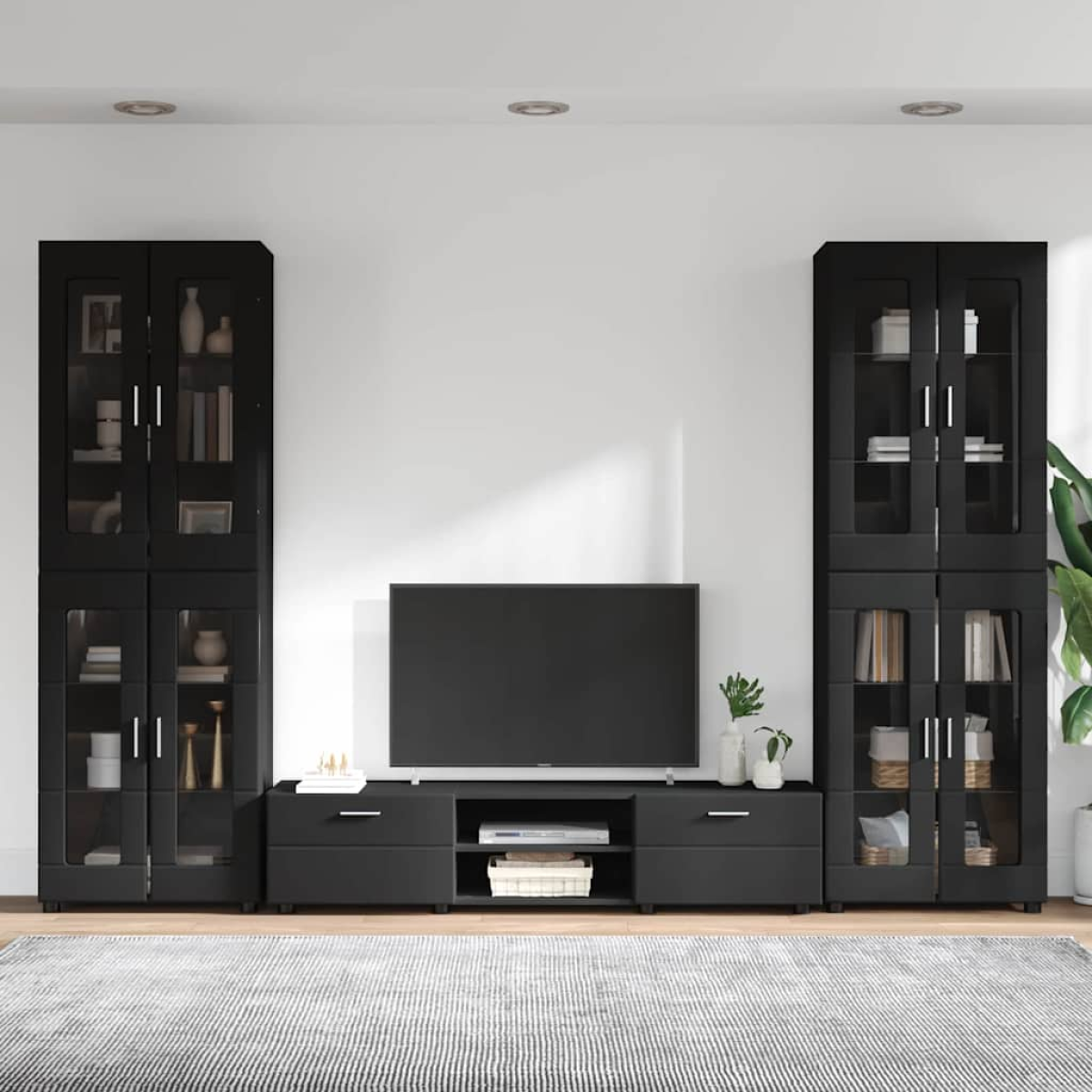 vidaXL TV Cabinet Set with Drawer FLORIN Black Engineered Wood