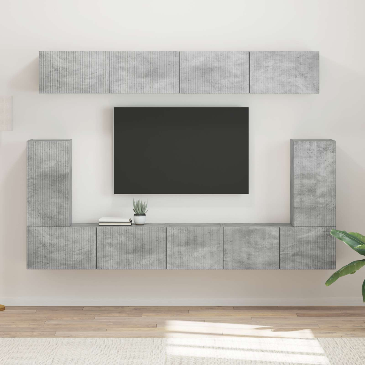 This Modern TV Cabinet Set transforms your living area with a sleek and efficient design. With its contemporary style, characterized by simplicity and functionality, it’s a perfect addition to any home emphasizing clean lines and minimal ornamentation. Giving way to seamless integration within your space, this cabinet set offers versatility and functionality for indoor living environments, providing ample storage while maintaining an elegant appearance. Engineered Wood Construction Offering durability and a polished look, this cabinet set is crafted from high-quality engineered wood. Its material is renowned for being robust and resilient, defending against everyday wear and tear, ensuring the set remains a long-term staple in your living room. Wall-Mounted Style Elevate your décor with this space-saving, wall-mounted design. By lifting storage units off the floor, it enhances the sense of roominess while ensuring a sleek, modern appearance. This feature is particularly beneficial for compact spaces, allowing for clutter-free organization. Thoughtful Organization Designed with versatility in mind, this set includes a variety of cabinets. Store electronics, media collections, and decorative items effortlessly, enhancing your living room’s functionality and appearance. Each component offers distinct spaces perfect for tidy arrangement. Simple Assembly Required Requires assembly by two people using basic tools such as a drill, hammer, and screwdriver. The step-by-step guide ensures a smooth process, allowing you to enjoy the cabinet’s aesthetic and functional benefits promptly. Engineered Wood Back and Shelf Both crafted from durable materials, the back and shelves provide strong, reliable support for your possessions. Ensuring stability and strength, these tailored details highlight the set’s commitment to quality, proving it as not only stylish but also reliable for everyday use.
