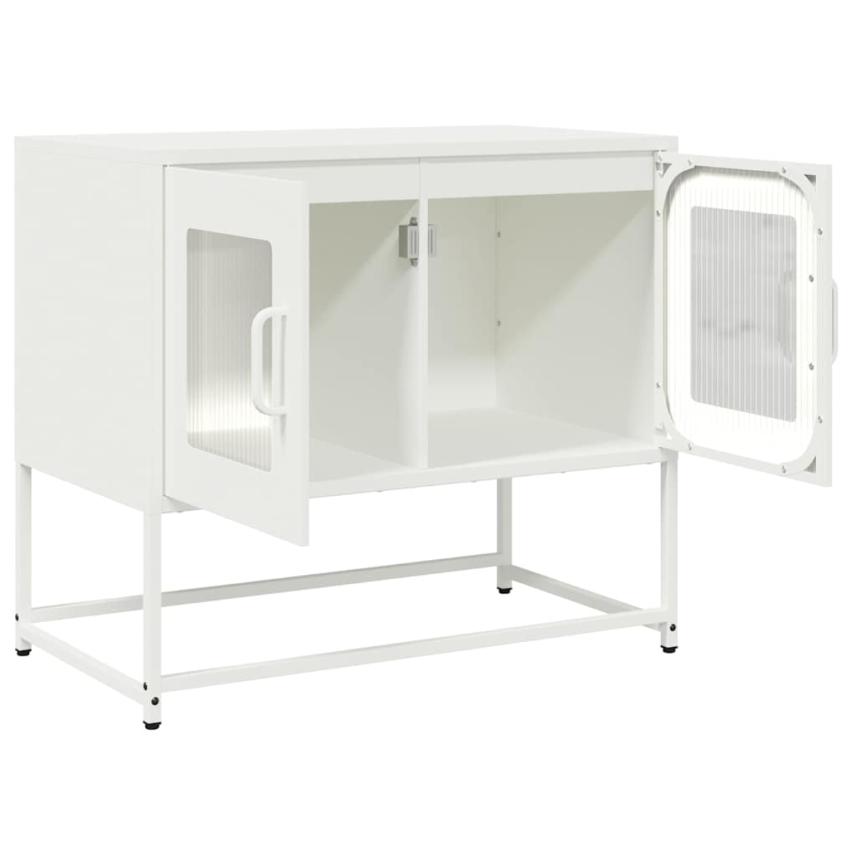 This TV cabinet offers both decorative appeal and practical storage, making it a perfect addition to your home. Stable and long-lasting frame: Steel is strong, stable, and durable, making it an ideal choice for a wide range of applications, from furniture manufacturing to construction.Practical handles: The tv stand comes with handles that provide a comfortable grip, helping you open and close the cabinet easily while adding extra beauty.Ample storage space: The tv bench offers ample storage space for dining essentials and other household items to keep them organised and within reach.Metal feet: The metal feet add a calm style to your interior while ensuring stability.Wide applications: You can use this tv sideboard as a bathroom cabinet or kitchen cupboard, or just as an elegant storage cabinet in bedrooms, powder rooms, entryways, corridors and offices, dining rooms, and other living areas. Warning:To prevent it from tipping over, this product must be used with the provided wall attachment device.