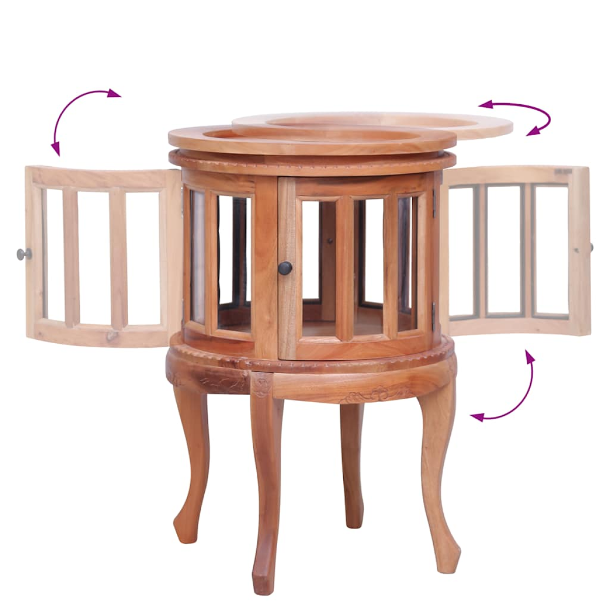 Bring the luxury of incense burner inspired design into your interior with our elegant wooden vitrine cabinet! Our side cabinet will make a practical as well as decorative addition to your interior. Made of solid mahogany wood with classical brown finish and glass, this solid wood vitrine cabinet is exceedingly durable and sturdy. Mahogany is a tropical hardwood, standing out with its beauty, durability and colour. The couch table offers storage space with 1 large compartment. Additionally, the sturdy tabletop is ideal for displaying decorative objects, photo frames, potted plants, as well as various other items. It is easy to wipe clean with a damp cloth. The side cabinet is easy to assemble.