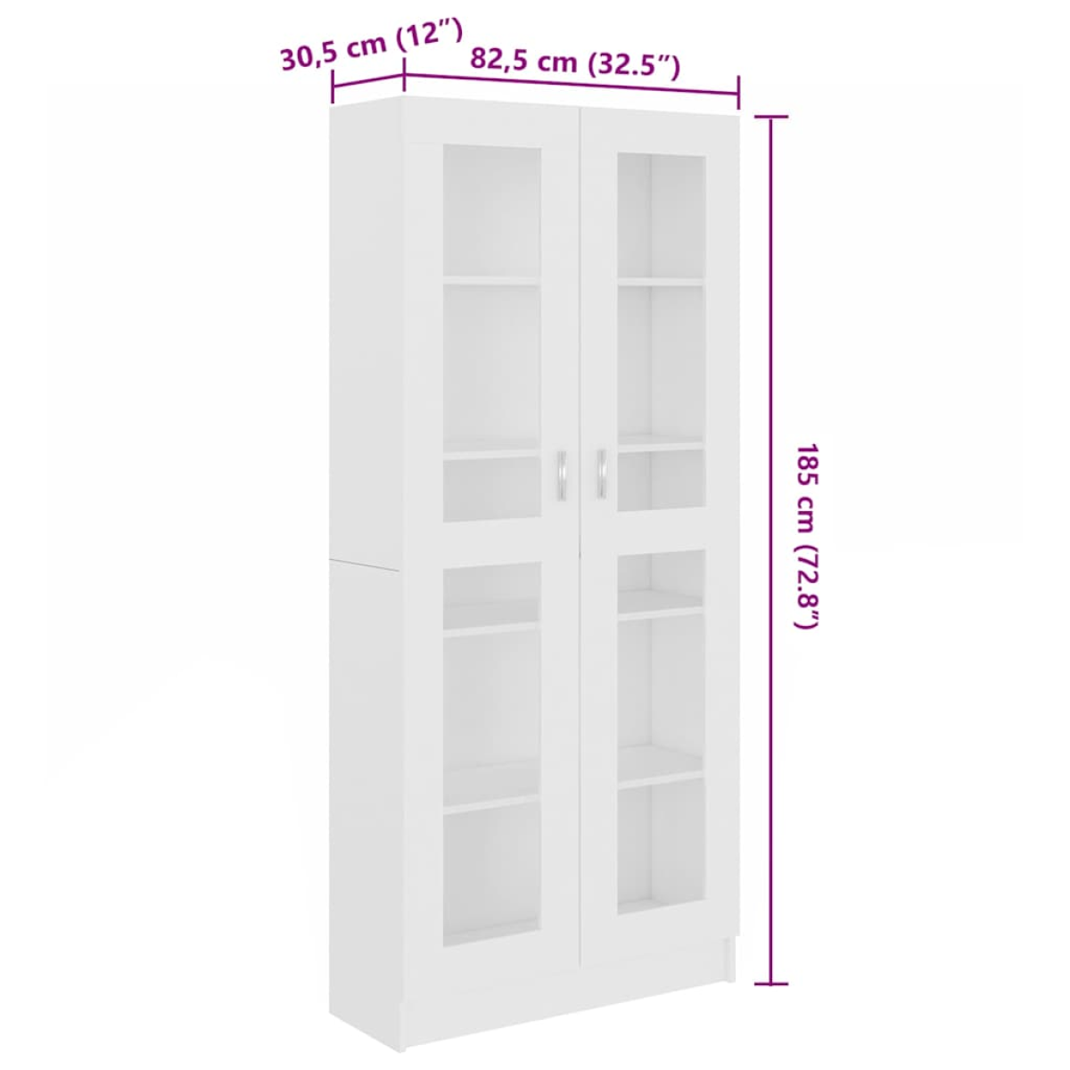 vidaXL Vitrine Cabinet White 82.5x30.5x185 cm Engineered Wood