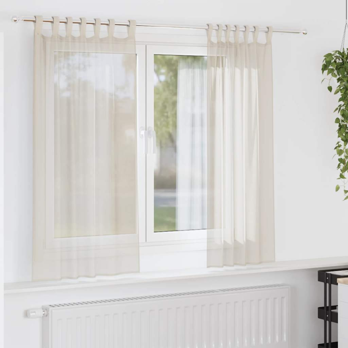Enjoy a well-lit room without harsh glare with these voile curtains. Durable material: The curtain is made of 100% polyester, making it durable and long-lasting.Semi-transparent design: The net curtain allows fresh air to flow in and block sunlight to some degree, offering a cosy feel while shielding your space from prying eyes.Easy-to-hang tab top: The curtain panel is designed with a tab top, making installation simple and allowing for smooth movement on curtain rods.Versatile usage: The sheer curtain is perfect for layering with heavier drapes or using solo for a fresh, minimalist look.Washable: The curtain is washable at a low temperature, making it easy to maintain. Good to know:The curtain rod is not included in the delivery.
