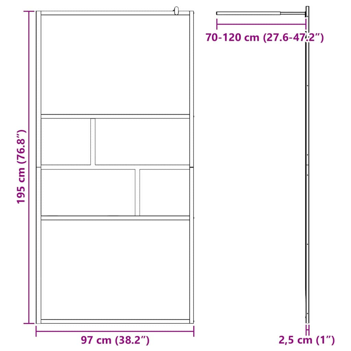 This Walk-in Shower Wall with Clear ESG Glass is the epitome of modern elegance and functionality. Featuring a smooth frosted glass pattern coupled with elegant aluminium fixtures, it brings sophistication and simplicity to your bathroom. Designed for indoor use, this shower wall is perfect for those looking to add a touch of modern flair while enjoying a long-lasting and efficient showering solution. Its transparent style provides a sleek look, while maintaining a sense of openness in your bathroom space, suitable for contemporary homeowners. Material Durability: Crafted from high-quality glass and aluminium, this shower wall ensures a solid and enduring presence in your bathroom. The glass, known for its longevity and resilience, withstands daily use while maintaining clarity and elegance. Aluminium components lend additional support with their rust-resistant properties, ensuring the wall's attractiveness and functionality over time. Visual Appeal: The frosted glass finish offers a beautiful blend of privacy and openness, adding to the overall aesthetic of your bathroom. The lack printing on the middle panel creates a stylish contrast between the upper and lower clear glass sections, beautifully coordinated for a modern and functional design. Functional Elegance: Designed with simplicity and efficiency in mind, this shower wall marries high functionality with aesthetic finesse. Its rectangular shape and smooth texture allow for effortless integration into any space, creating a spacious and light-filled enclosure for your daily routines. Practical Application: Suitable for any bathroom setting, the walk-in shower wall maximizes space while ensuring maintenance of a clutter-free environment. Its design is conducive to swift and secure installation, offering practical options for upgrading your current bathroom layout easily. Care &Maintenance: To maintain its pristine quality, disassemble with care during moves to avoid potential damage. Regular cleaning will keep glass surfaces clear and surfaces scratch-free, preserving its elegant and functional presence in your bathroom.