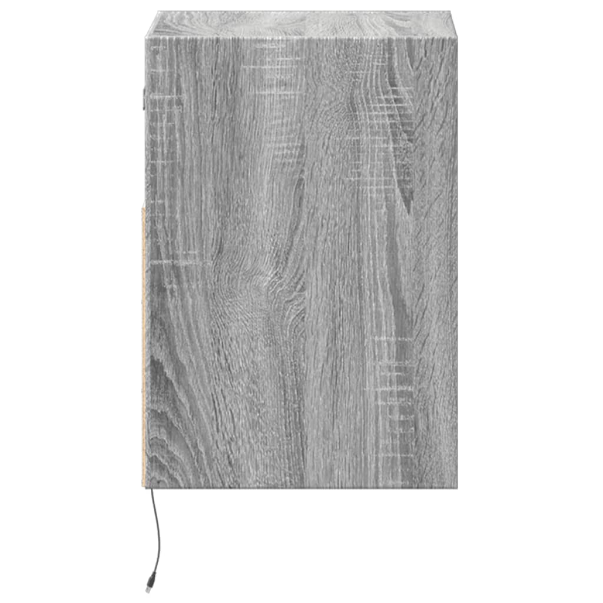 vidaXL Wall-mounted Bedside Cabinet with LED Lights Grey Sonoma