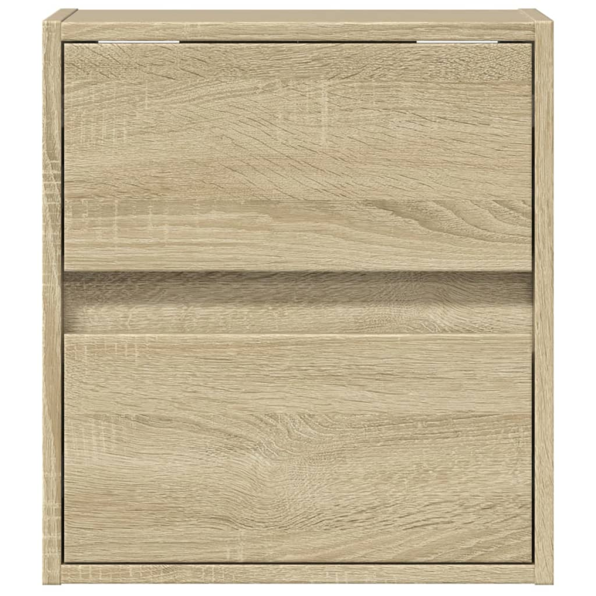 Upgrade your bedroom with this wall-mounted bedside cabinet featuring LED lights! It easily complements any furniture style in your home! Stable and durable material: Engineered wood is a durable and stable material with a smooth surface that is resistant to moisture, warping, and splitting, making it a reliable choice for a variety of projects.RGB LED Lights for a pleasant ambience: This bedside cabinet features LED lights that can be easily adjusted to create a personalised light show. You can customise the modes, colours, and brightness to enhance the ambience of your interior space.Ample storage space: This bedside nightstand has 2 drawers, providing ample space to keep your magazines, books, remote controls and other small items well-organised and within easy reach.Space saving: The wall-mounted design maximises unused wall space, converting it into a compact and efficient storage area. Good to know:Screws and plugs for inside the wall are not included. We advise you to find and use screws and plugs suitable specifically for your walls. If you're not sure, you can consult with a professional. Please read and follow each step of the instructions.The product has a USB connector that requires a certified 5V USB power source (not included).