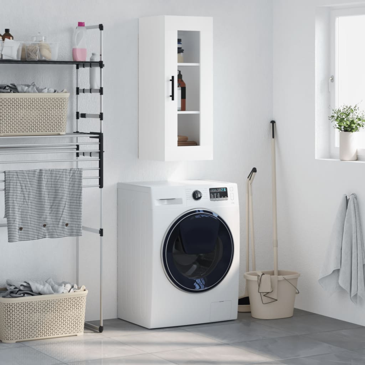 This wall mounted cabinet with an elegant design makes a timeless addition to your interior decor. Durable material: The engineered wood is of exceptional quality with smooth surface and also features strength, stability and resistance to moisture. Made of engineered wood, this storage cabinet is sturdy and durable. Ample storage space: The hanging cabinet offers ample storage space for keeping your various daily essentials well organised and within easy reach.Wall-mounted function: The hanging wall cabinet doesn't take any floor space. You can hang it on the wall easily.Practical design: Your belongings are visible behind the glass door and at the same time protected from dust. In addition, the handle makes it easy to open the side cabinet.Versatile cabinet: You can also put this floating storage cabinet on top of a sideboard to form a highboard, creating extra storage space. And the simple design makes it suitable for your living room, bedroom, study, and any other living space. Good to know:Screws and plugs for inside the wall are not included. We advise to find and use screws and plugs suitable specifically for your walls. If you're not sure, you can consult with a professional. Please read and follow each step of the instructions.