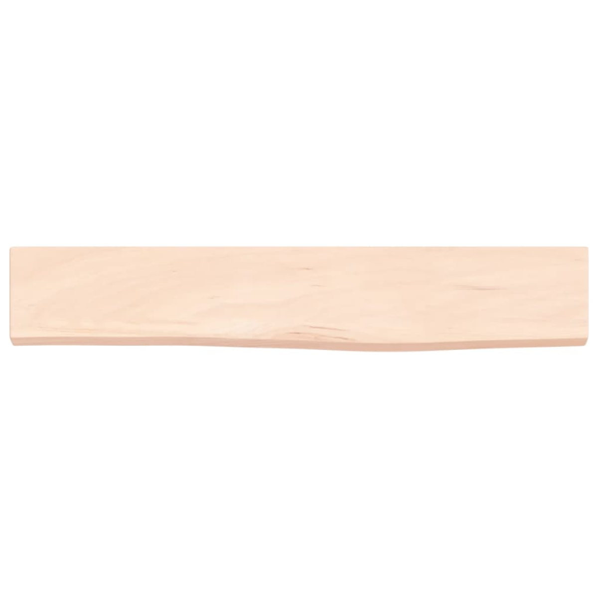 Do you need more storage options but don't have any spare space? This wall shelf in rustic style is the perfect solution. Durable construction: The wall shelf is made of solid oak wood, which is a beautiful natural material. Oak wood has a medium brown colour and a dense grain, contributing to its unique look.Versatile applications: Besides a shelf, this storage shelf can be combined with different bases according to your needs. It can be used as a bathroom top, cabinet top, desk top, table top etc.Untreated surface: As the wooden shelf is crafted from solid oak wood with no finish, you can keep its natural colour but also can paint or lacquer it as per your preference.Handmade with live edge: This shelf board is handmade with a live edge. Due to that the knots, cracks, slightly curved shapes, and colour tones are part of the oak wood, every piece of shelf has its own unique character to display. The delivery is random, ensuring the exclusivity and individuality of your product. Good to know:As a natural product, wood may show knots and imperfections that we fill with black fillings to ensure a smooth appearance.