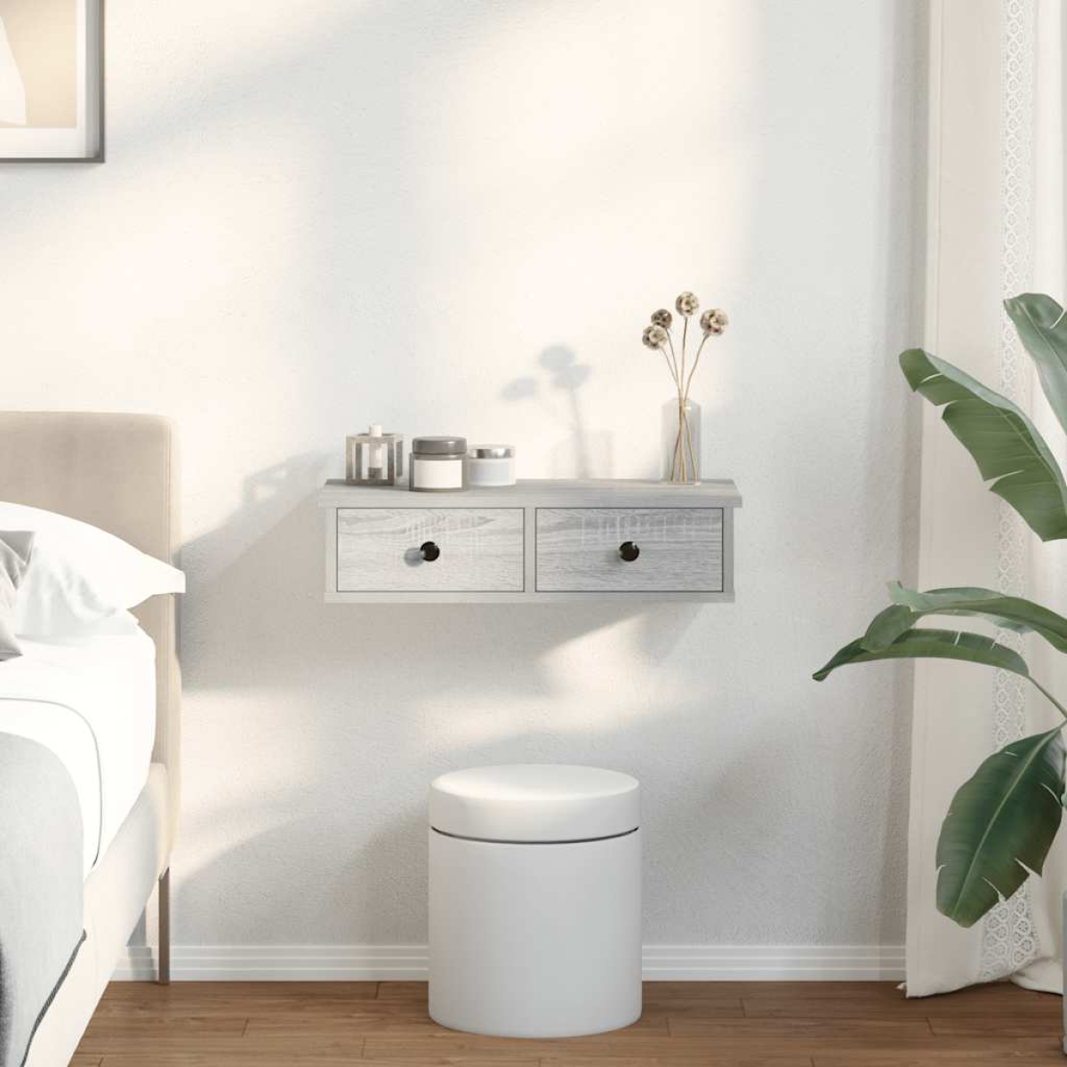 This wall shelf with drawers is meant to be a decorative as well as a practical extension to your home decor. Stable and durable material: Engineered wood is a durable and stable material with a smooth surface that is resistant to moisture, warping, and splitting, making it a reliable choice for various projects.Ample storage space: The wall cabinet offers handy storage space for keeping your various daily essentials well organised and within easy reach.Wall-mounted function: The floating bedside cabinet doesn't take up any floor space. You can hang it on the wall easily.Displaying function: You can also place your favourite photos, decorations, or flowers on top of the cabinet to enrich your life.Wide applications: Thanks to its timeless design, this wall cabinet effortlessly complements your decor and can be used in the living room, bedroom, and more. Good to know:Screws and plugs for inside the wall are not included. We advise to find and use screws and plugs suitable specifically for your walls. If you're not sure, you can consult with a professional. Please read and follow each step of the instructions.