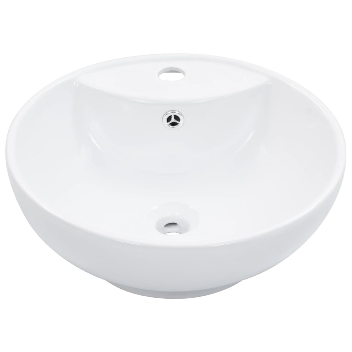 Made of ceramic, this round basin will be a chic and timeless addition to any bathroom, washroom, cloakroom or powder room. The washroom basin can not only serve as vessel for daily use, but also an adornment in your living space. Thanks to its trendsetting and contemporary design, this wash basin will definitely suit any decor. Made of ceramic, the sink is considerably easy to clean. Additionally, its high gloss finish adds a charming touch to this bathroom basin. Equipped with an overflow, this basin will effectively flow water out when it gets too full. The basin has a faucet hole for installing a tap. Please note that the tap and the drain are not included in delivery.