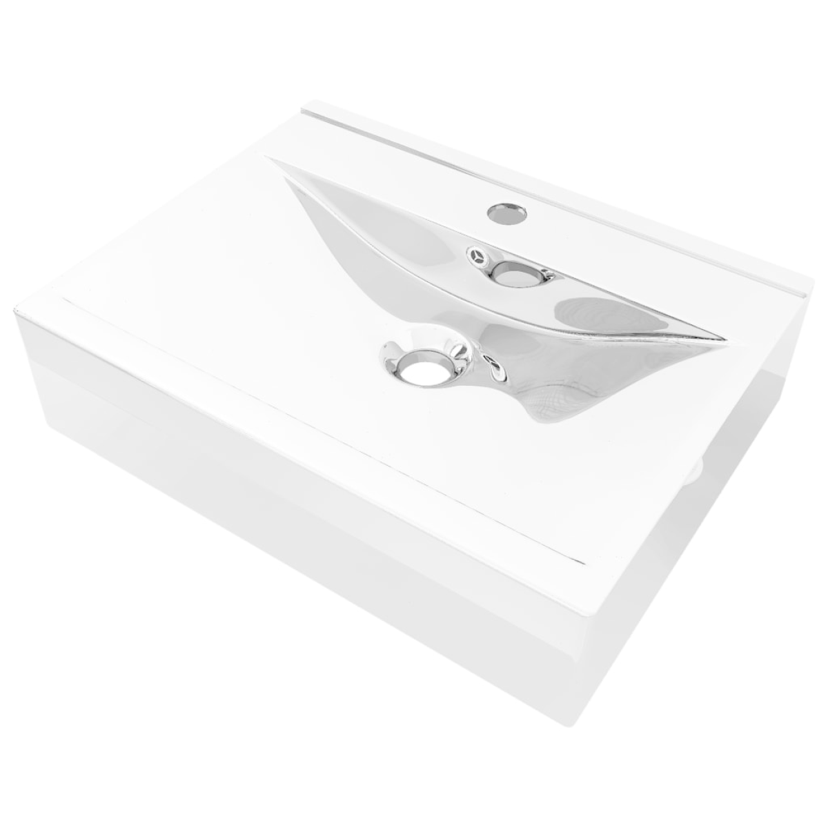 Made of ceramic, this rectangular basin will be a chic and timeless addition to any bathroom, washroom, cloakroom or powder room. The washroom basin can not only serve as vessel for daily use, but also an adornment in your living space. Thanks to its trendsetting and contemporary design, this wash basin will definitely suit any decor. Made of ceramic, the sink is considerably easy to clean. Additionally, its high gloss finish adds a charming touch to this bathroom basin. Equipped with an overflow, this basin will effectively flow water out when it gets too full. The basin has a faucet hole for installing a tap. Please note that the tap and the drain are not included in delivery.
