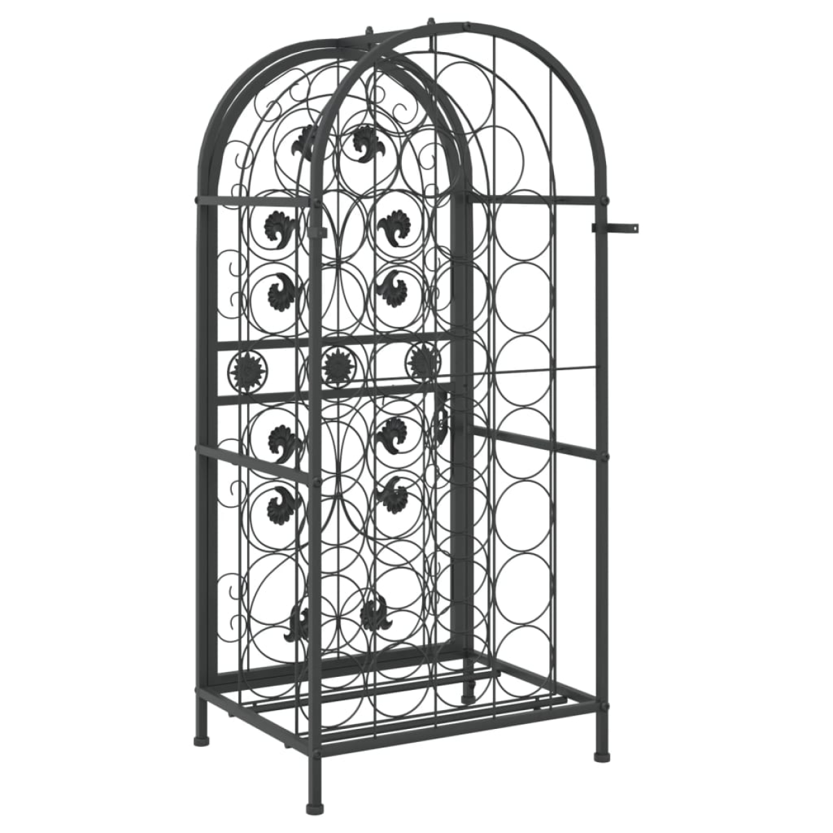 Store, age and display your wine in style with this wine rack! Large capacity: This wine holder can hold up to 33 bottles, effectively maximising storage space and keeping the area tidy. Stable construction: This wine bottle holder is made of sturdy wrought iron with a black powder-coated finish to resist oxidation and rust. The included wall fixings prevent the wine stand from swaying or tilting, making it suitable for years of use. Suitable for many places: Featuring a simple and elegant design, this wine storage rack is perfect for use in bars, wine cellars, kitchens, restaurants, and more.Lockable: This metal wine rack can be locked to prevent your wine bottles from falling, adding more security. Warning:To prevent it being overturned, this product must be used with the provided wall attachment device.