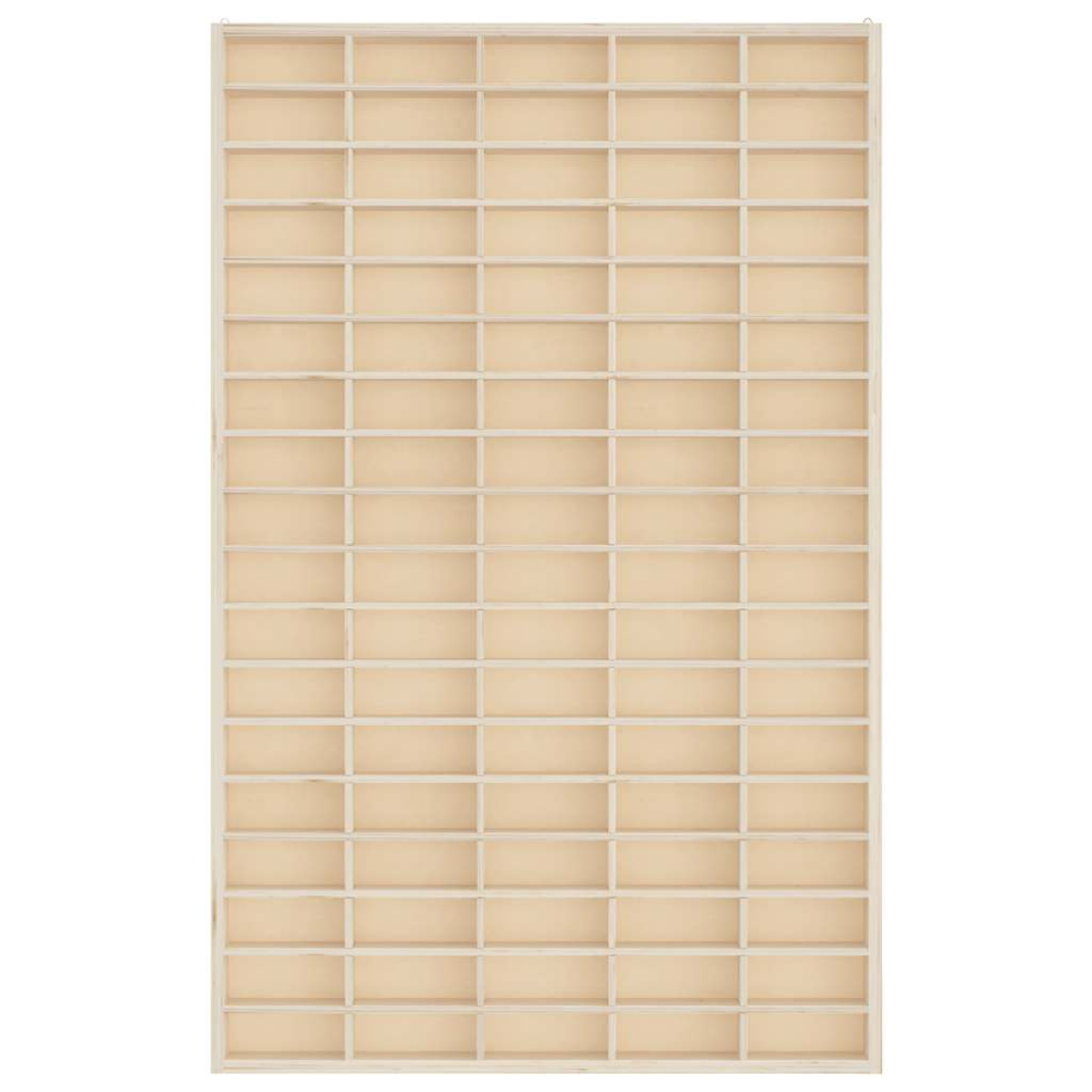 Elevate your space with this sleek wooden collector's display case, combining stylish design and organisation for a clutter-free environment. Durable material: The wall mounted display cabinet is made of plywood, making it durable and ensuring a long lifespan.Wall-mounted design: The wall hanging display cabinet has two triangle hooks that are easy to hang on the wall and do not take up valuable floor space, and there is no need to drill holes in the cabinet.Ample storage space: This wall cabinet display case features 90 compartments that offer ample space to keep your small items well organised and within reach.Enhanced safety: The hardpaper corner protection design minimises sharp edges, ensuring a safer environment for children and pets by reducing the risk of accidents.Wide applications: This wall mountable display cabinet features a timeless and simple design that can effortlessly complement a variety of decors, used in the living room, dining room, or bedroom.