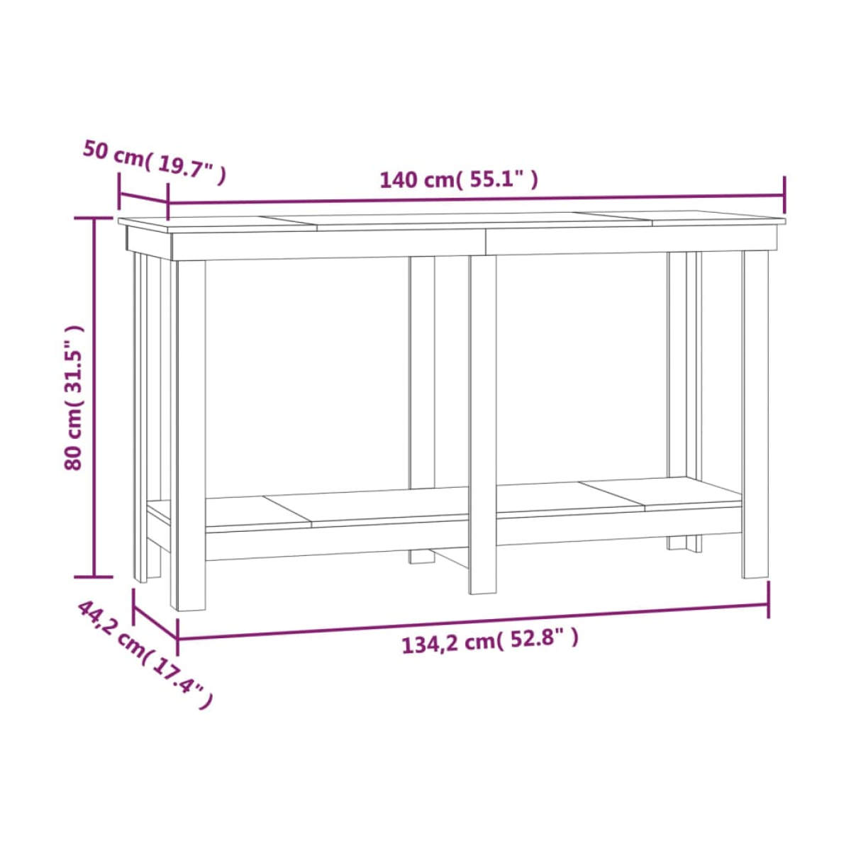 vidaXL Work Bench Honey Brown 140x50x80 cm Solid Wood Pine