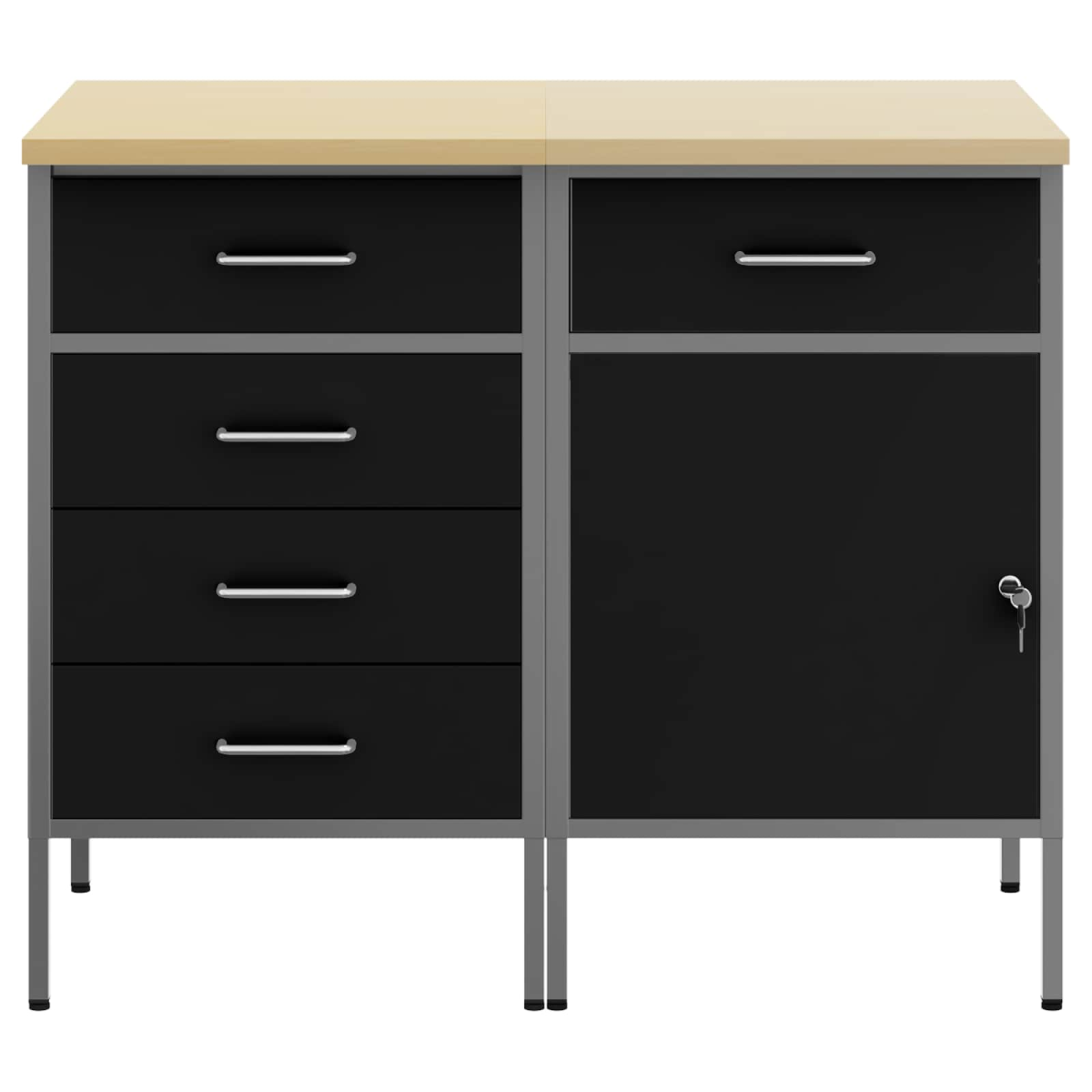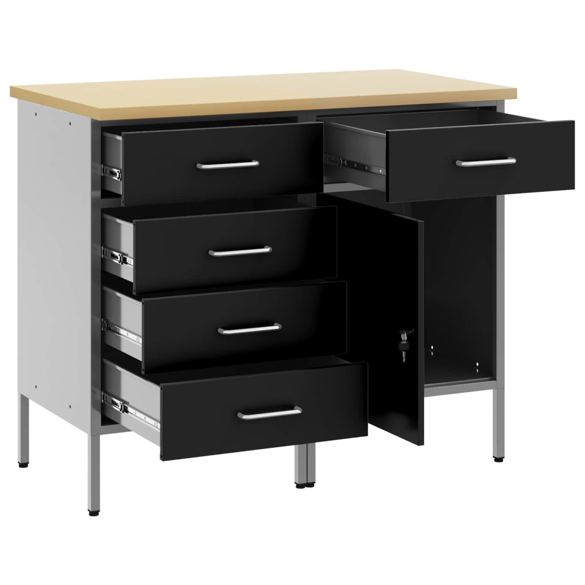 This Modern Work Cabinet seamlessly merges form and function with its industrial style and robust design. Suitable for workshops, its innovative construction using engineered wood and steel showcases a unique rectangular shape. This cabinet is perfect for organizing tools and enhancing the workspace experience, catering to both hobbyists and professionals. The industrial design, inspired by urban lofts, adds an aesthetic edge to your workshop setup, combining raw materials for a chic look. Steel Framework: Utilizing engineered wood and steel, this cabinet ensures durability and longevity within your workspace. The strong framework provides a reliable and robust foundation for storing heavy tools and equipment. Despite its solid build, the materials offer a sleek appearance, enhancing the aesthetics of any workshop environment. Maintenance is straightforward, requiring a simple wipe with a damp cloth, preserving its pristine look. Versatile Storage: Equipped with compartments, drawers, and shelves, this cabinet offers extensive organizational solutions. These components enable efficient arrangement of tools and materials, optimizing workspace and ensuring everything is in its rightful place. Its intelligent design caters to a variety of storage needs, from large tools to small accessories, making it indispensable for organized workspaces. Industrial Design: Reflecting urban loft styles and incorporating raw materials, this cabinet's design perfectly complements modern workshop décor. Its industrial aesthetic appeals to contemporary and classic tastes alike, featuring a seamless blend of utility and style. This balance ensures the cabinet stands out as both a functional and attractive piece of tool organization hardware. Simple Maintenance: Keeping the cabinet clean is hassle-free with its material choice requiring minimal effort. Regular wiping with a damp cloth suffices to maintain its clean appearance. This low-maintenance aspect allows owners to focus more on their tasks rather than upkeep, enhancing productivity and efficiency. Efficient Assembly: Designed for straightforward construction, assembling the cabinet requires two people with basic tools like a screwdriver. This simplification of setup ensures you spend more time organizing and less on installation. Detailed instructions facilitate a smooth buildup process and quick integration into your workspace.