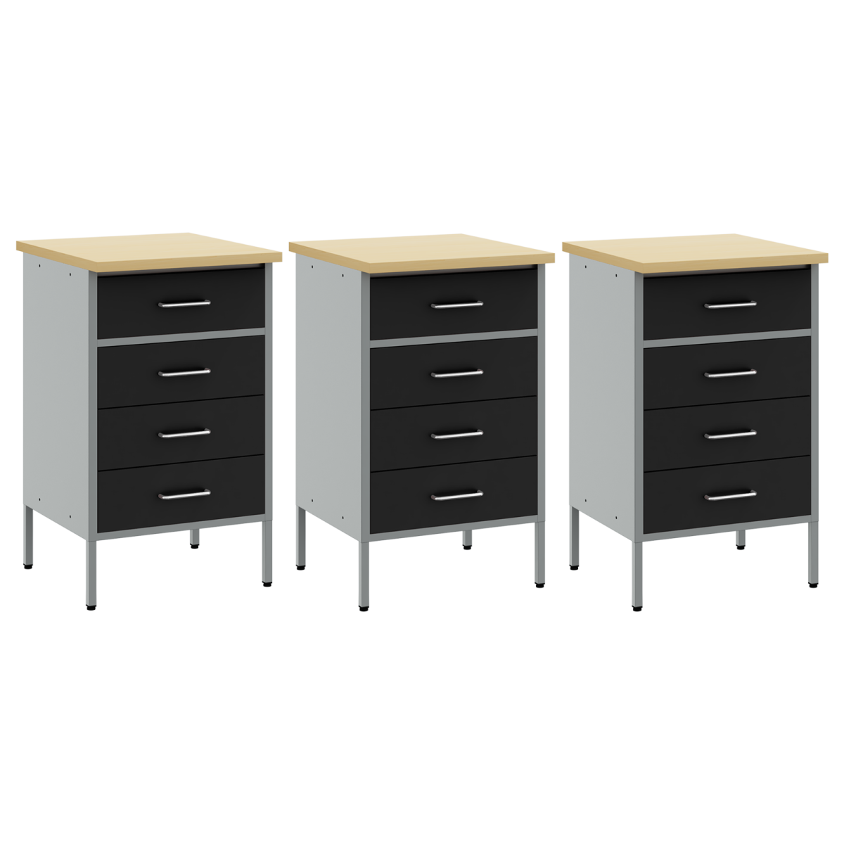 vidaXL Work Cabinet with Drawer 3 pcs Black and Grey 75 x 45 x 85 cm