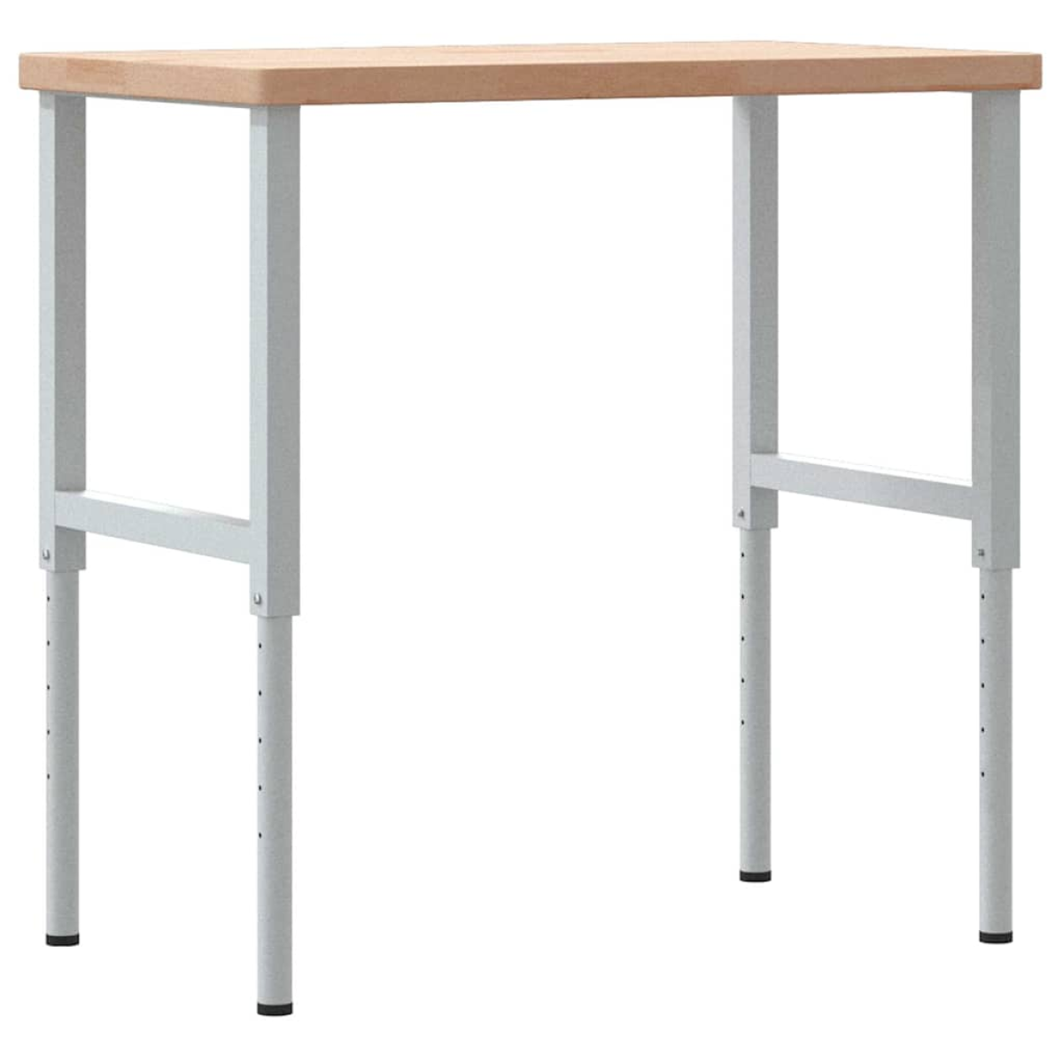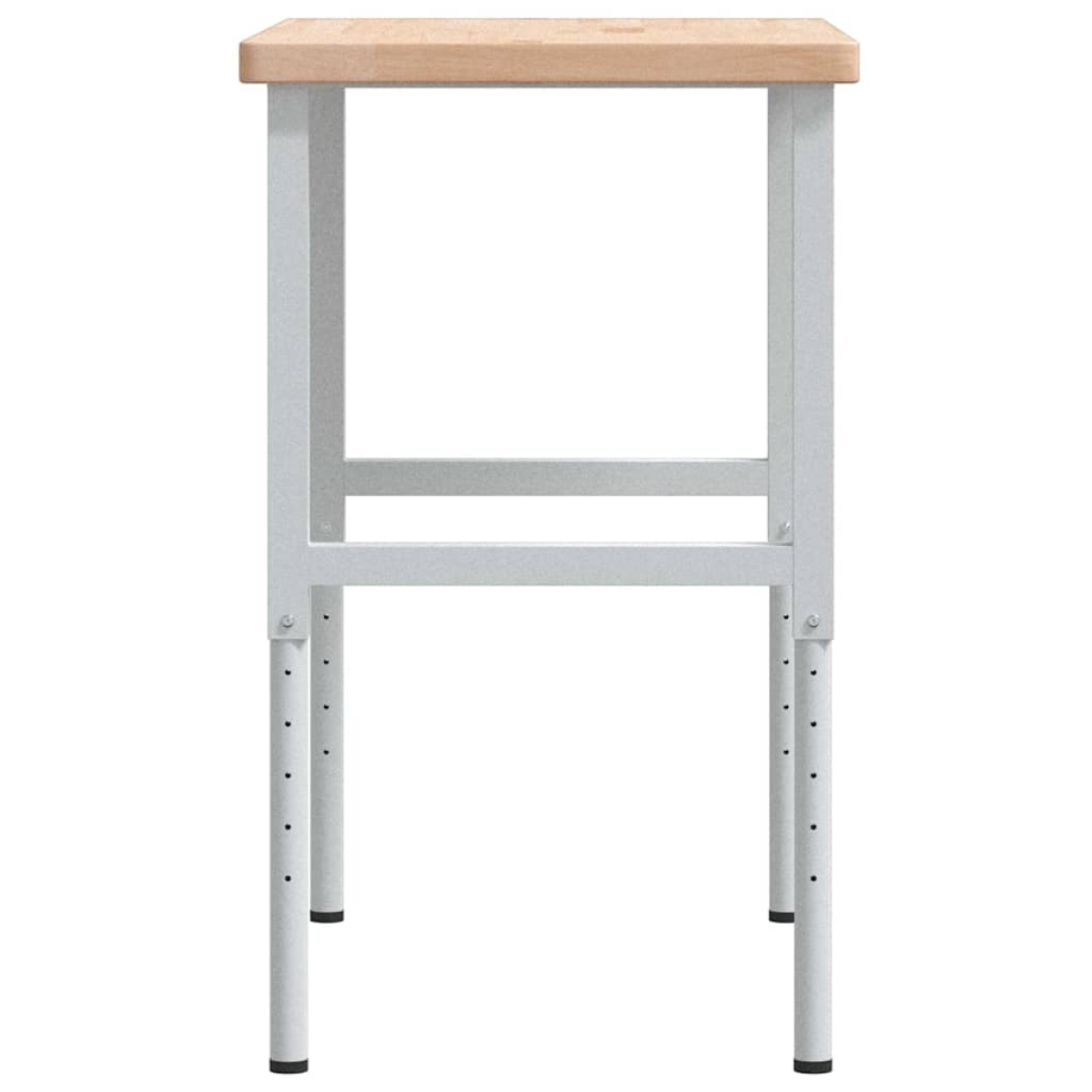 The workbench is a great helper whether you want to finish repair work or fulfil your DIY dreams! Robust and durable material: Solid oak wood is known for its strength, durability, and beautiful grain pattern, making it great for long-lasting furniture. Its natural resistance to insects and fungi ensures that oak furniture remains attractive and functional for years.Stable and long-lasting frame: The powder-coated metal frame is strong, stable, durable, and resistant to corrosion and harsh weather, ensuring long-lasting performance.Large working area: The work table provides a large working area to place your drills, cable drums, and other tool accessories.Versatile use: Features a simple and clean design, you can use it as a tool bench or work desk according to your needs. The workstation is meant to be a practical and convenient piece of furniture.Height-adjustable leg: This wooden workbench leg is height-adjustable so you can customise it according to your preferences. Good to know:Each item is unique with variations in colours and grains. The delivery is random, ensuring the exclusivity and individuality of your product. Warning:This tabletop has no predrilled holes and screws are not included. Therefore holes have to be predrilled, and screws have to be purchased before assembling this work table.
