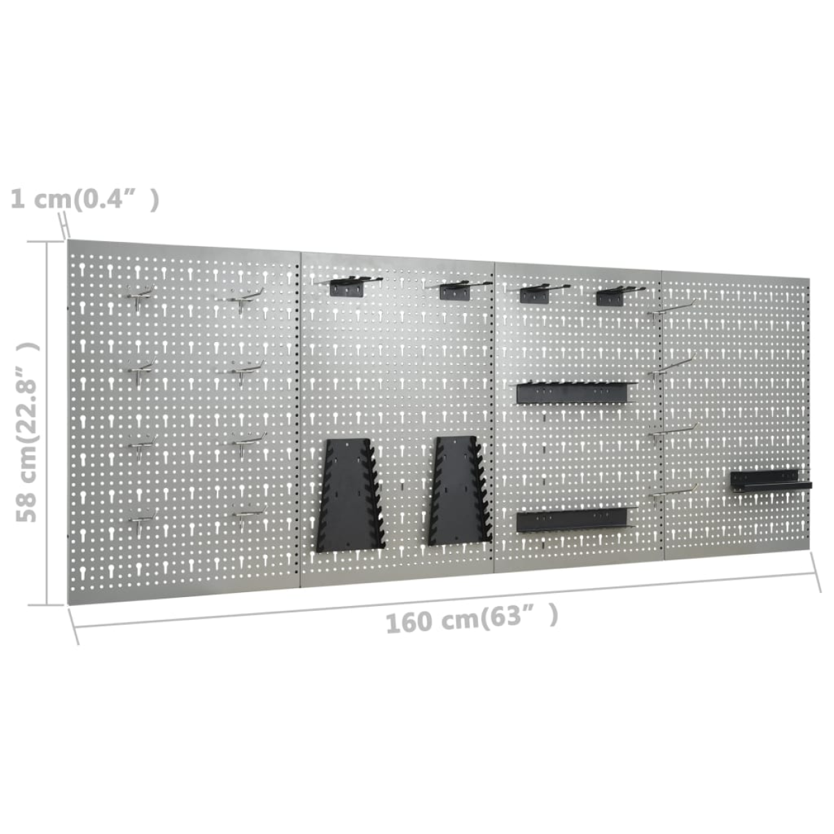 This set is combined with 1 workbench and 4 wall panels, and make a practical storage solution to your workshop and garage. The heavy-duty workbench, standing out with ample storage space and 500 kg loading capacity. This large and sturdy tabletop provides a stable platform for all your repair works. The workbench has 6 drawers, ensuring that you can organize your tools, parts and accessories such as screws, nails and adhesive tape well. All drawers are equipped with ball bearing mechanism for smooth sliding. There are 2 shelves with a lockable door, to easily accommodate drills, cable drums and grinders. Additionally, the feet are height-adjustable. This workstation is crafted from premium steel and engineered wood, making it extra sturdy, durable and easy to clean. It is easy to assemble. These tool panels are crafted from solid steel to bear the weight of various tools, like drills, pliers, screwdrivers and wrenches. These panels are perforated for fixing tools easily and securely. The 4 wall panels can be fixed together for extra rigidity. It is an ideal addition to your workbench and workshop cabinets with a practical width of 160 cm.