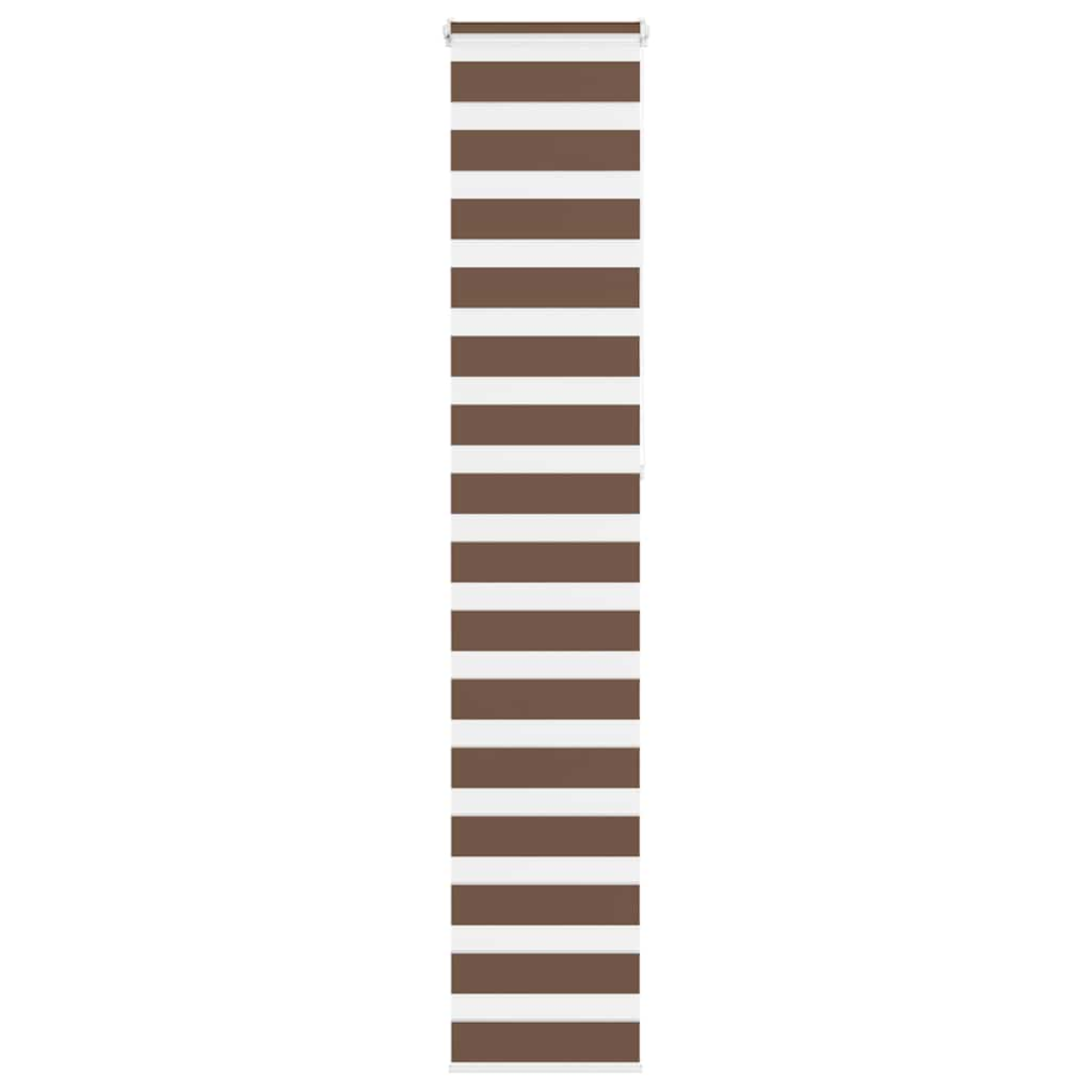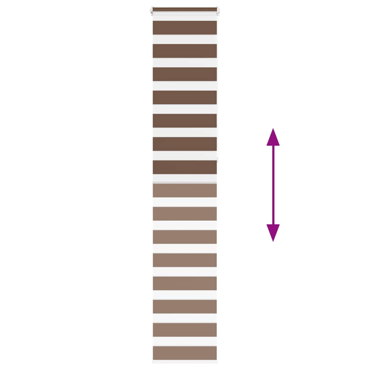 Elevate your room's style and functionality with this zebra blind, offering privacy and elegance. Durable and low maintenance: Made from 100% polyester, the zebra blind is built to last and resist wear and tear. They are also easy to clean, typically requiring light dusting or wiping with a damp cloth.Privacy and sun protection: The two-layer design features alternating transparent and opaque fabric panels. The light can be easily controlled using the chain hoist, allowing for seamless adjustment of the room's lighting from translucent to fully darkened.Two assembly ways: You can attach the zebra roller blind to the wall or window with screws or without drilling using clamping brackets, depending on your needs.Elegant design: Thanks to its sleek and modern pattern design, this zebra roller blind effortlessly complements a variety of room decor. You can use it in the living room, bedroom, office, and so on.Child safety and adjustability: The roller blind includes a chain connector that makes it easy to adjust the height according to your needs, and it also has a cord clip to add child safety. Warning:Keep cords out of the reach of young children. Cords may become wrapped around a child’s neck. Good to know:Before buying blinds, start by measuring your window glass. Just a friendly tip: the fabric is a bit narrower than the total width, including the brackets.To make sure your new blinds provide complete coverage, just add 4,1 cm to the width of the window glass when calculating what to order.