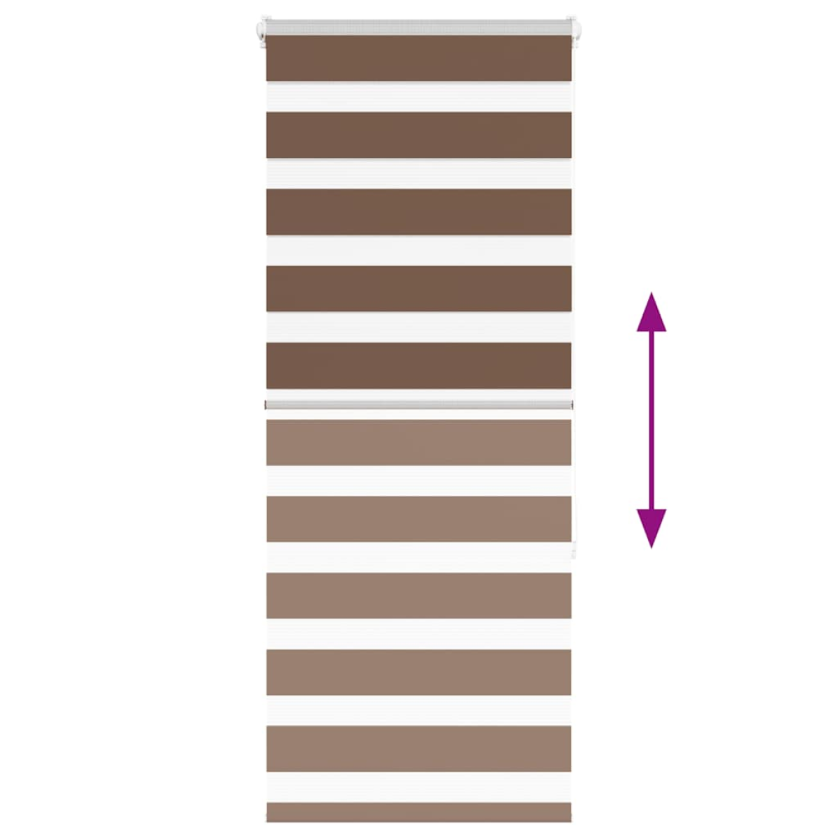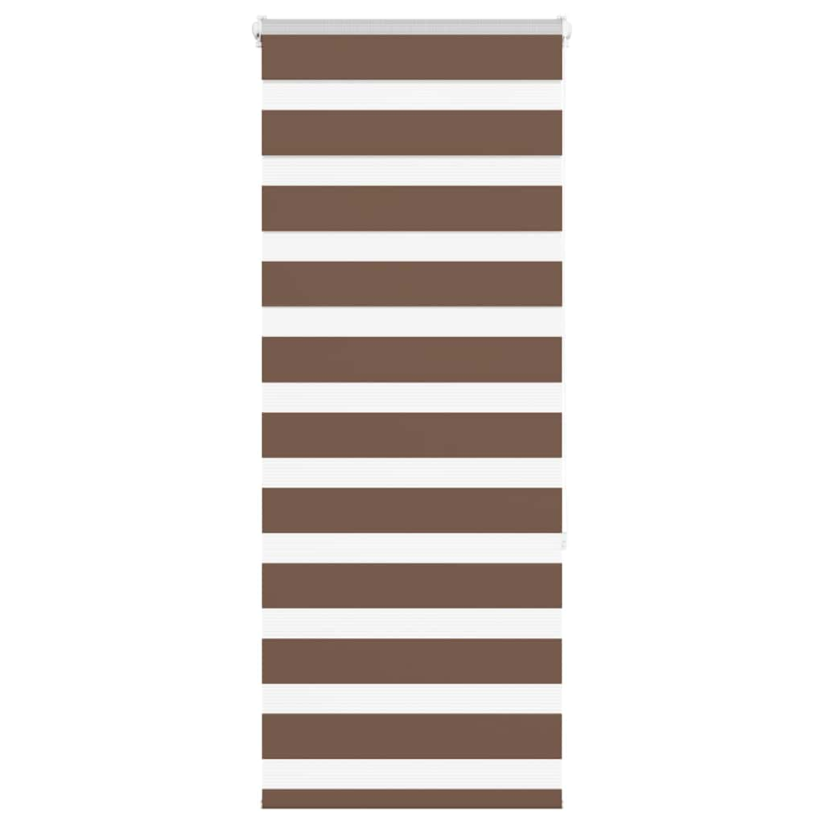 Elevate your room's style and functionality with this zebra blind, offering privacy and elegance. Durable and low maintenance: Made from 100% polyester, the zebra blind is built to last and resist wear and tear. They are also easy to clean, typically requiring light dusting or wiping with a damp cloth.Privacy and sun protection: The two-layer design features alternating transparent and opaque fabric panels. The light can be easily controlled using the chain hoist, allowing for seamless adjustment of the room's lighting from translucent to fully darkened.Two assembly ways: You can attach the zebra roller blind to the wall or window with screws or without drilling using clamping brackets, depending on your needs.Elegant design: Thanks to its sleek and modern pattern design, this zebra roller blind effortlessly complements a variety of room decor. You can use it in the living room, bedroom, office, and so on.Child safety and adjustability: The roller blind includes a chain connector that makes it easy to adjust the height according to your needs, and it also has a cord clip to add child safety. Warning:Keep cords out of the reach of young children. Cords may become wrapped around a child’s neck. Good to know:Before buying blinds, start by measuring your window glass. Just a friendly tip: the fabric is a bit narrower than the total width, including the brackets.To make sure your new blinds provide complete coverage, just add 4,1 cm to the width of the window glass when calculating what to order.