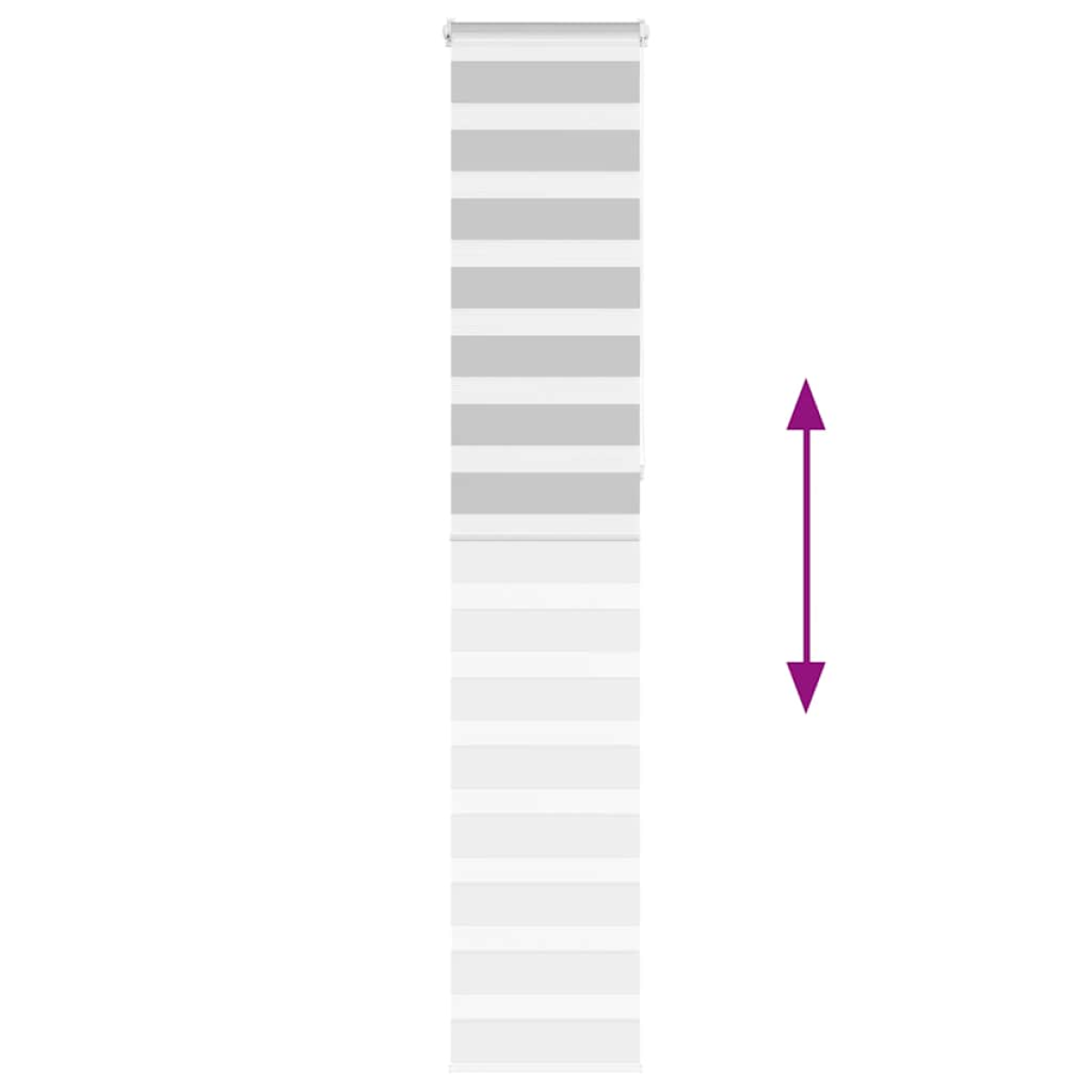 Elevate your room's style and functionality with this zebra blind, offering privacy and elegance. Durable and low maintenance: Made from 100% polyester, the zebra blind is built to last and resist wear and tear. They are also easy to clean, typically requiring light dusting or wiping with a damp cloth.Privacy and sun protection: The two-layer design features alternating transparent and opaque fabric panels. The light can be easily controlled using the chain hoist, allowing for seamless adjustment of the room's lighting from translucent to fully darkened.Two assembly ways: You can attach the zebra roller blind to the wall or window with screws or without drilling using clamping brackets, depending on your needs.Elegant design: Thanks to its sleek and modern pattern design, this zebra roller blind effortlessly complements a variety of room decor. You can use it in the living room, bedroom, office, and so on.Child safety and adjustability: The roller blind includes a chain connector that makes it easy to adjust the height according to your needs, and it also has a cord clip to add child safety. Warning:Keep cords out of the reach of young children. Cords may become wrapped around a child’s neck. Good to know:Before buying blinds, start by measuring your window glass. Just a friendly tip: the fabric is a bit narrower than the total width, including the brackets.To make sure your new blinds provide complete coverage, just add 4,1 cm to the width of the window glass when calculating what to order.