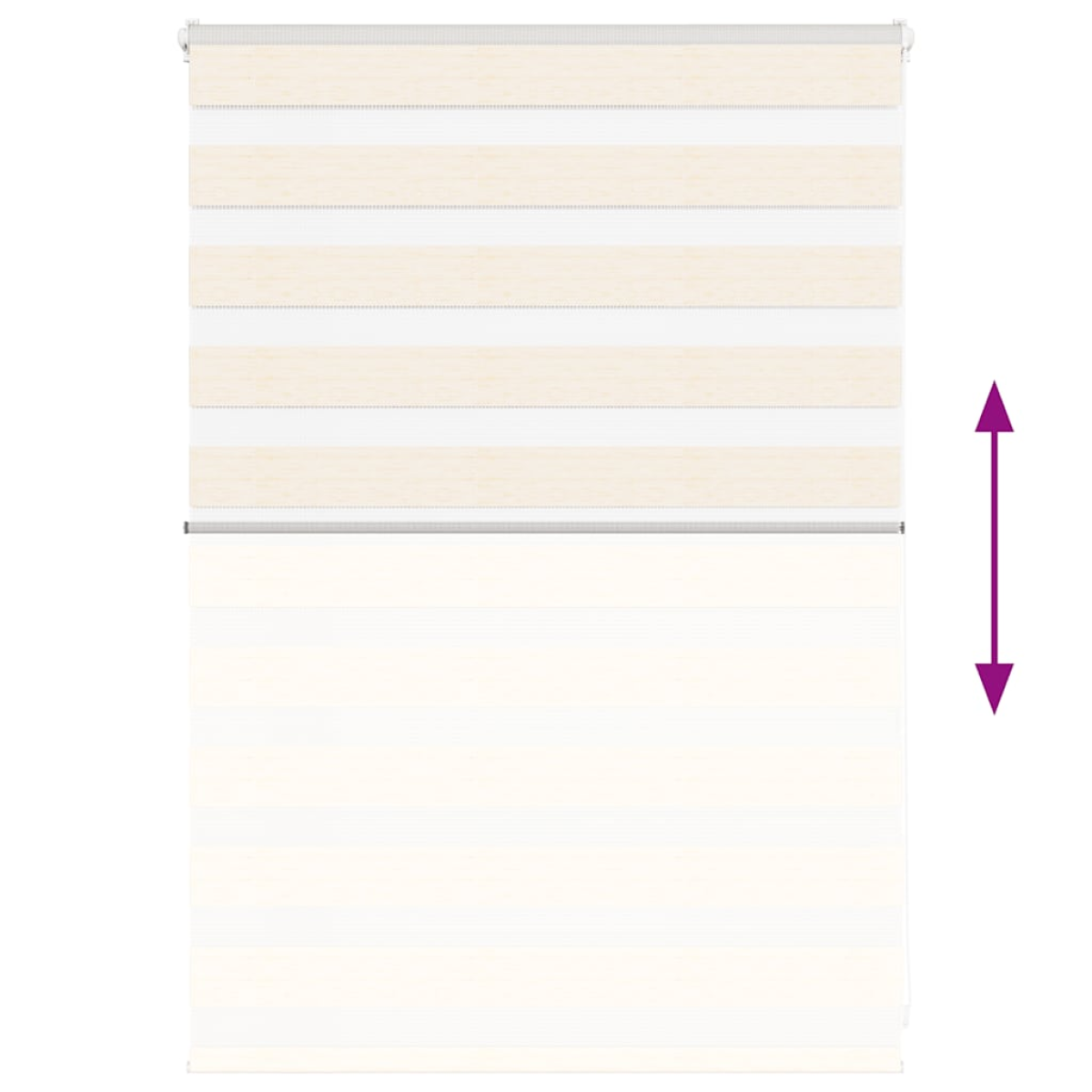 Elevate your room's style and functionality with this zebra blind, offering privacy and elegance. Durable and low maintenance: Made from 100% polyester, the zebra blind is built to last and resist wear and tear. They are also easy to clean, typically requiring light dusting or wiping with a damp cloth.Privacy and sun protection: The two-layer design features alternating transparent and opaque fabric panels. The light can be easily controlled using the chain hoist, allowing for seamless adjustment of the room's lighting from translucent to fully darkened.Two assembly ways: You can attach the zebra roller blind to the wall or window with screws or without drilling using clamping brackets, depending on your needs.Elegant design: Thanks to its sleek and modern pattern design, this zebra roller blind effortlessly complements a variety of room decor. You can use it in the living room, bedroom, office, and so on.Child safety and adjustability: The roller blind includes a chain connector that makes it easy to adjust the height according to your needs, and it also has a cord clip to add child safety. Warning:Keep cords out of the reach of young children. Cords may become wrapped around a child’s neck. Good to know:Before buying blinds, start by measuring your window glass. Just a friendly tip: the fabric is a bit narrower than the total width, including the brackets.To make sure your new blinds provide complete coverage, just add 4,1 cm to the width of the window glass when calculating what to order.