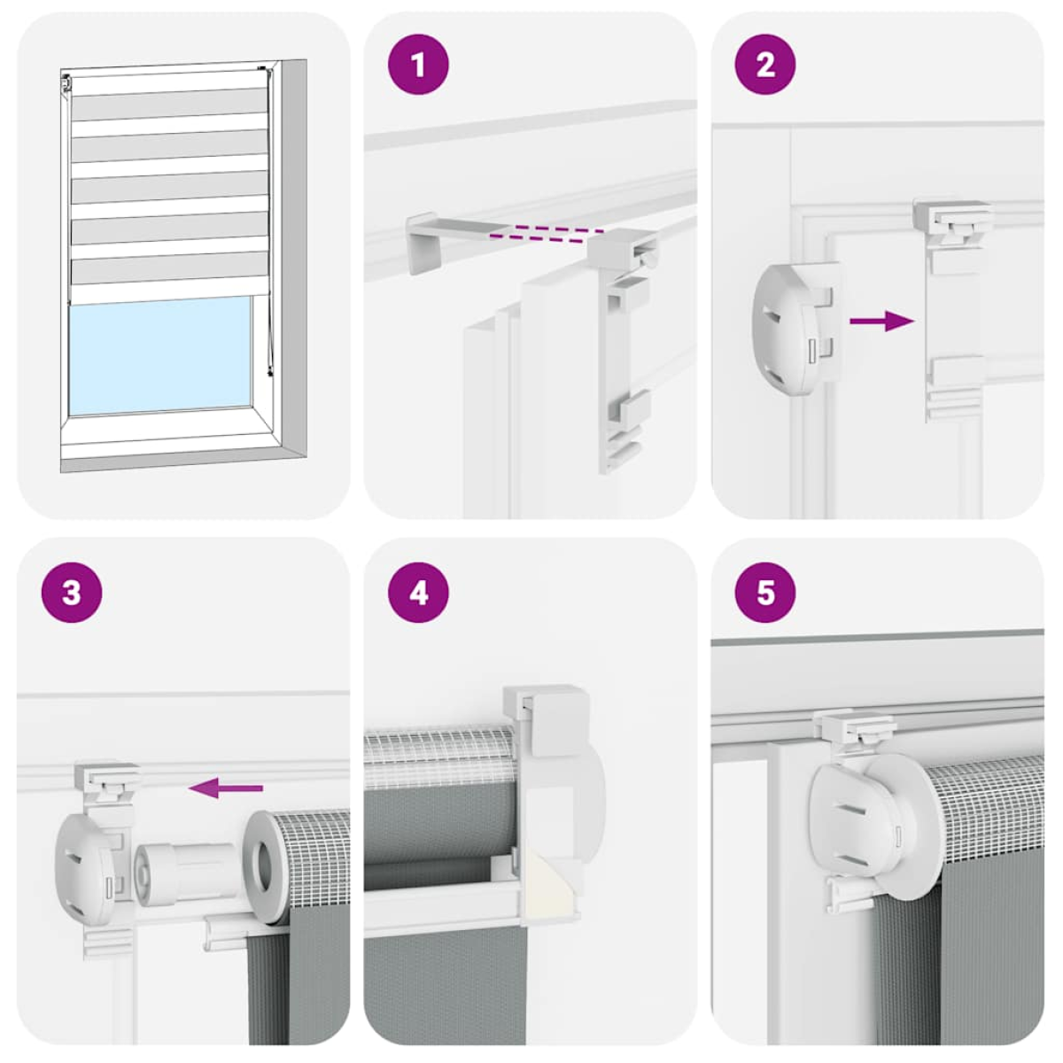 Elevate your room's style and functionality with this zebra blind, offering privacy and elegance. Durable and low maintenance: Made from 100% polyester, the zebra blind is built to last and resist wear and tear. They are also easy to clean, typically requiring light dusting or wiping with a damp cloth.Privacy and sun protection: The two-layer design features alternating transparent and opaque fabric panels. The light can be easily controlled using the chain hoist, allowing for seamless adjustment of the room's lighting from translucent to fully darkened.Two assembly ways: You can attach the zebra roller blind to the wall or window with screws or without drilling using clamping brackets, depending on your needs.Elegant design: Thanks to its sleek and modern pattern design, this zebra roller blind effortlessly complements a variety of room decor. You can use it in the living room, bedroom, office, and so on.Child safety and adjustability: The roller blind includes a chain connector that makes it easy to adjust the height according to your needs, and it also has a cord clip to add child safety. Warning:Keep cords out of the reach of young children. Cords may become wrapped around a child’s neck. Good to know:Before buying blinds, start by measuring your window glass. Just a friendly tip: the fabric is a bit narrower than the total width, including the brackets.To make sure your new blinds provide complete coverage, just add 4,1 cm to the width of the window glass when calculating what to order.