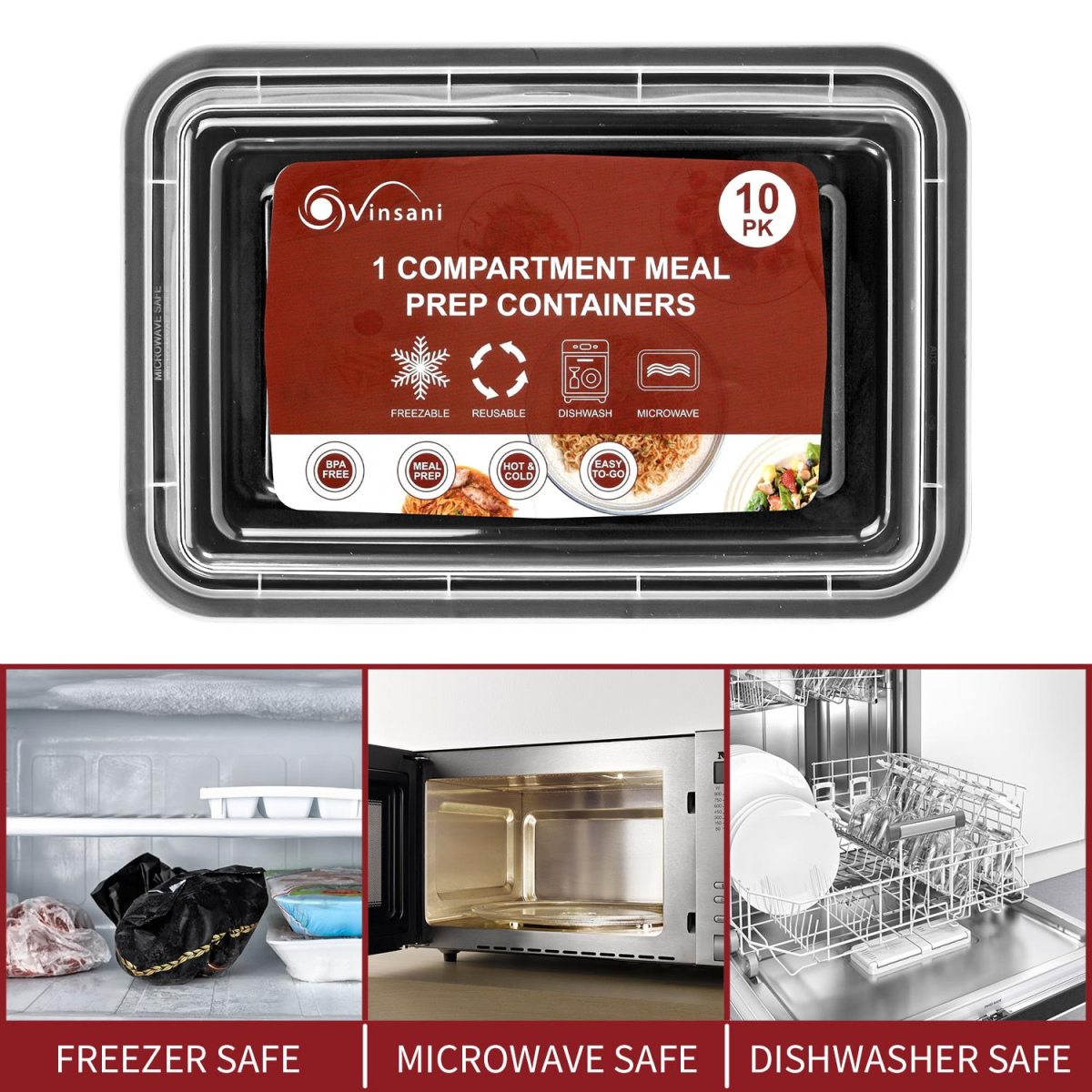 VINSANI 30pk 1 COMPARTMENT MEAL PREP CONTAINERS 1010474