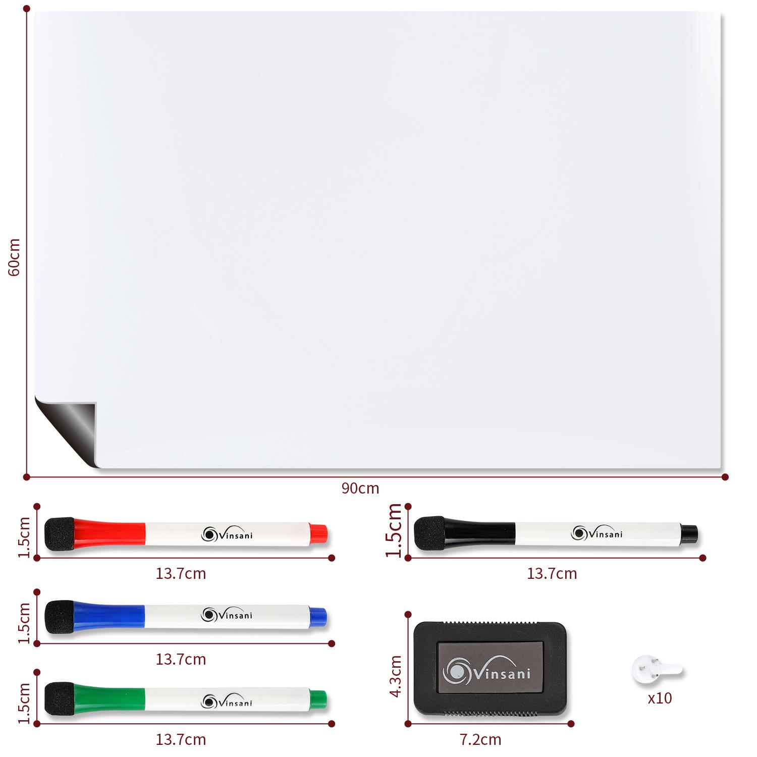 SET INCLUDES: 1  x magnetic whiteboard, finished with our premium gloss, 4 x Magnetic dry pen with eraser and 1 x magnetic eraser block.