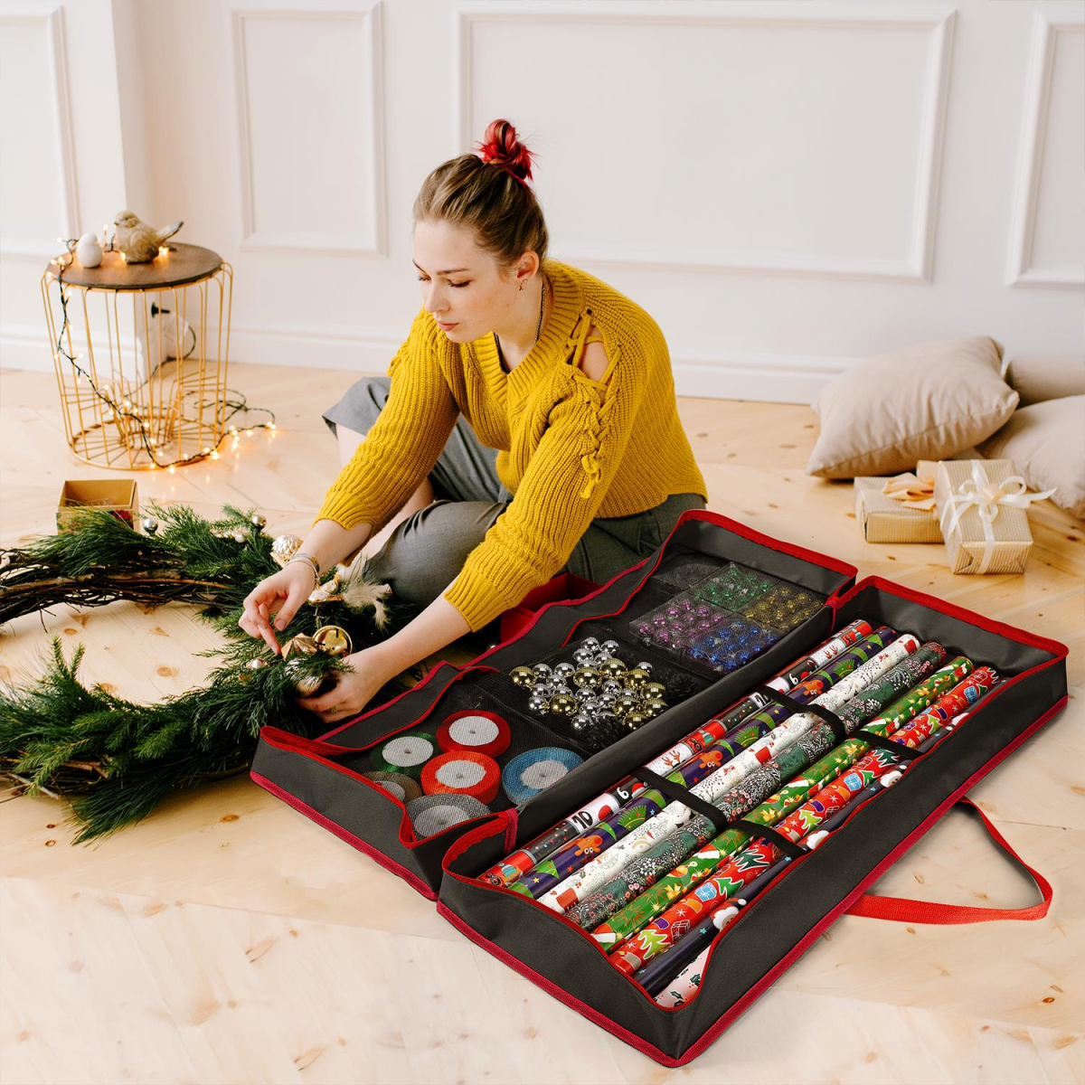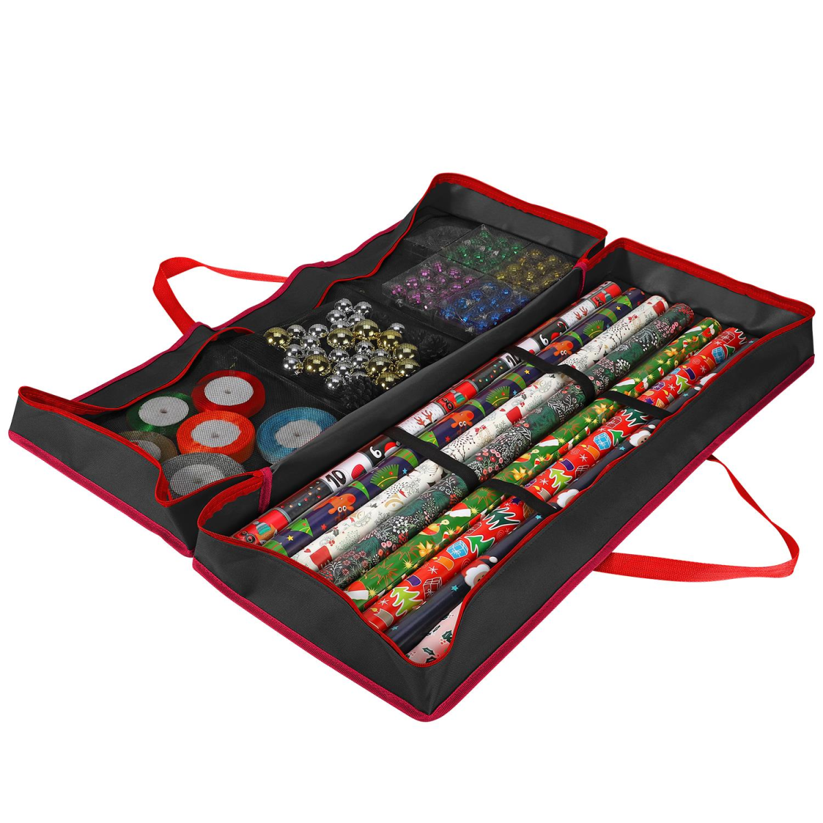 EASY TO STORE: Christmas storage bag features 2 large adjustable fastening straps suitable for placing the wrapping paper and mesh / net compartments for loose accessories. The ideal solution for storing all of your present wrapping goods clean, safe, cre