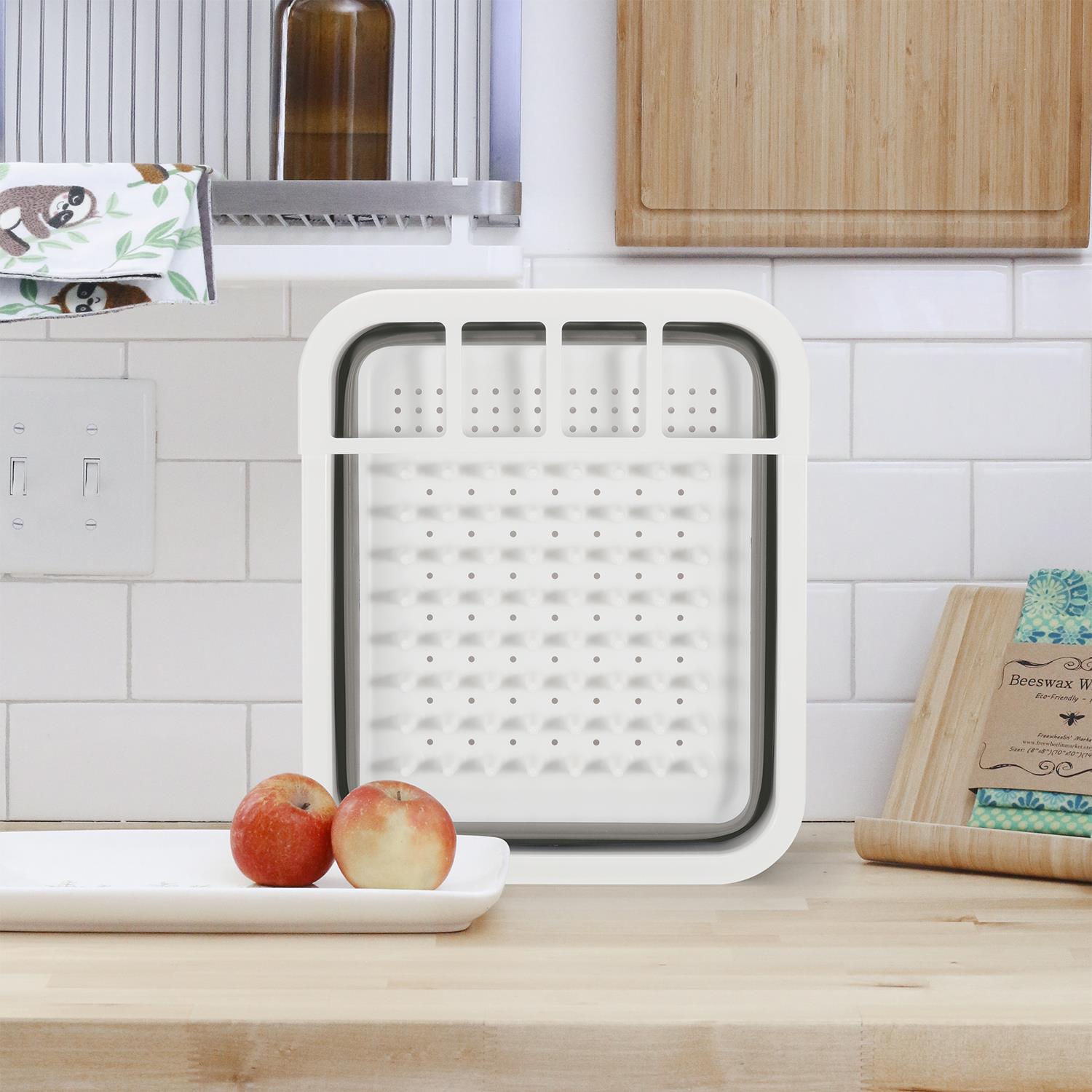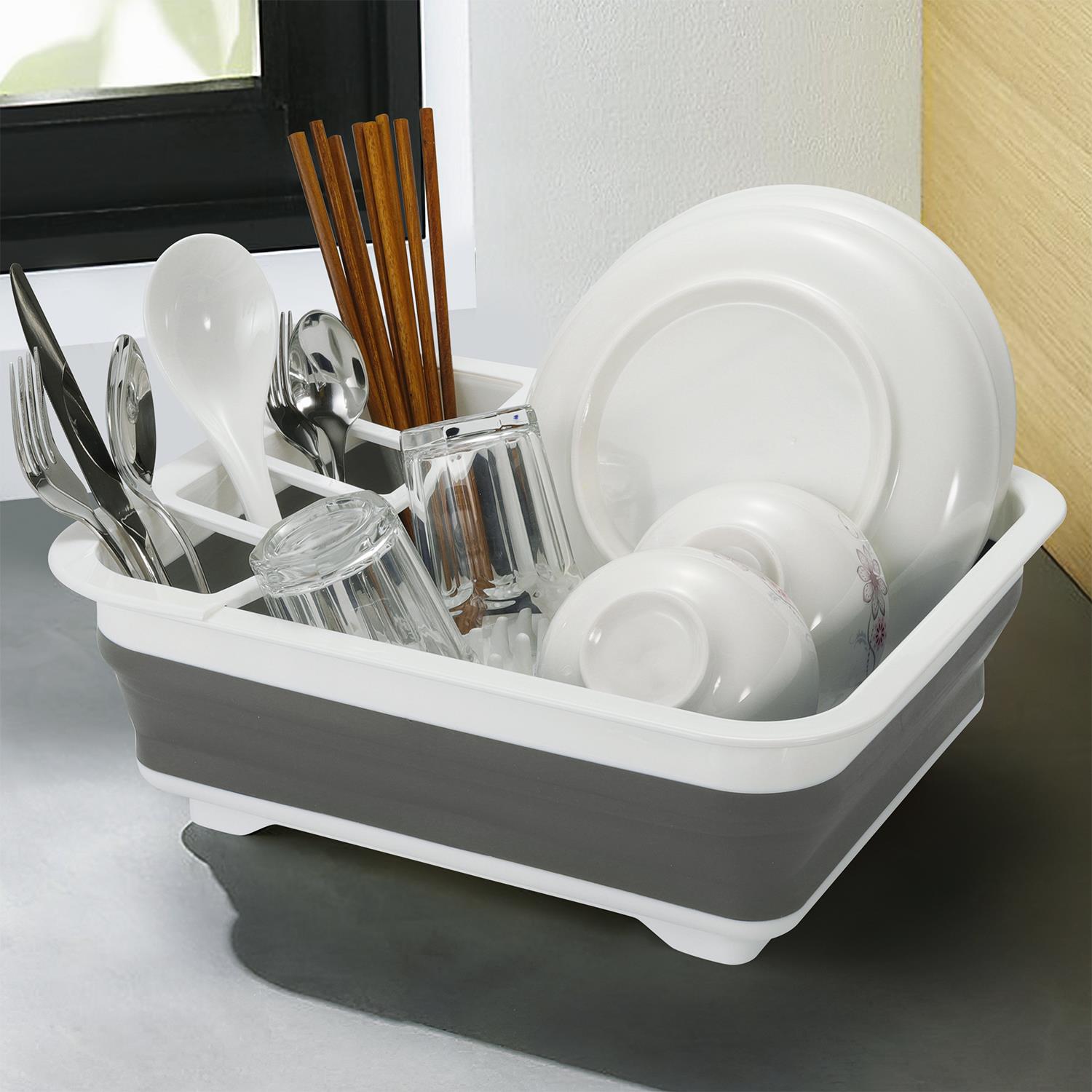 Collapsible dish drainer is an everyday kitchen essential item. It is cleverly designed with durable plastic that is break resistant, the drainer is practical and strong whilst also being incredibly flexible and easy to unfold or collapse.