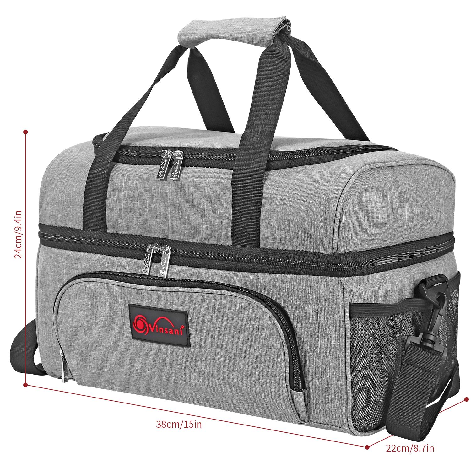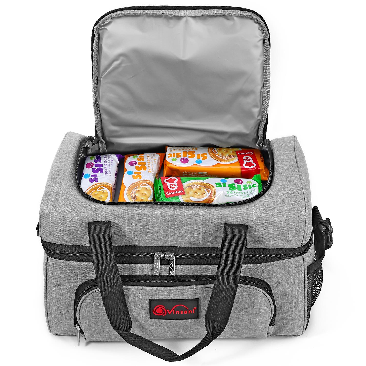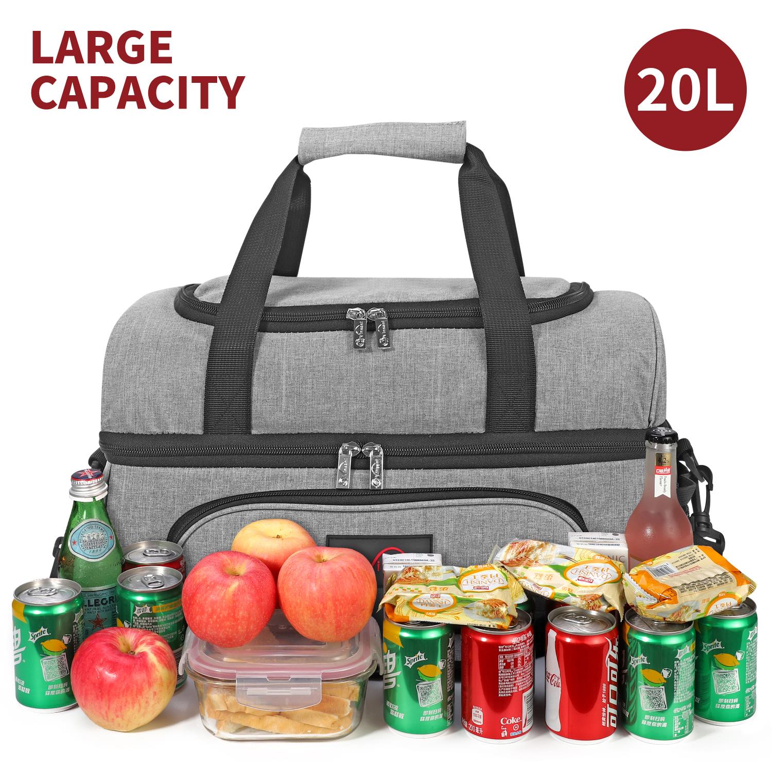 PORTABILITY & WELL-DESIGNED: Our dual compartment cooler bag features two sections which allows you to store hot and cold food separately, a wide opening for easy loading and unloading and a double zipper which provides a secured sealings. This also has side and front pockets for storing snacks, sweets, napkins, and other small items.