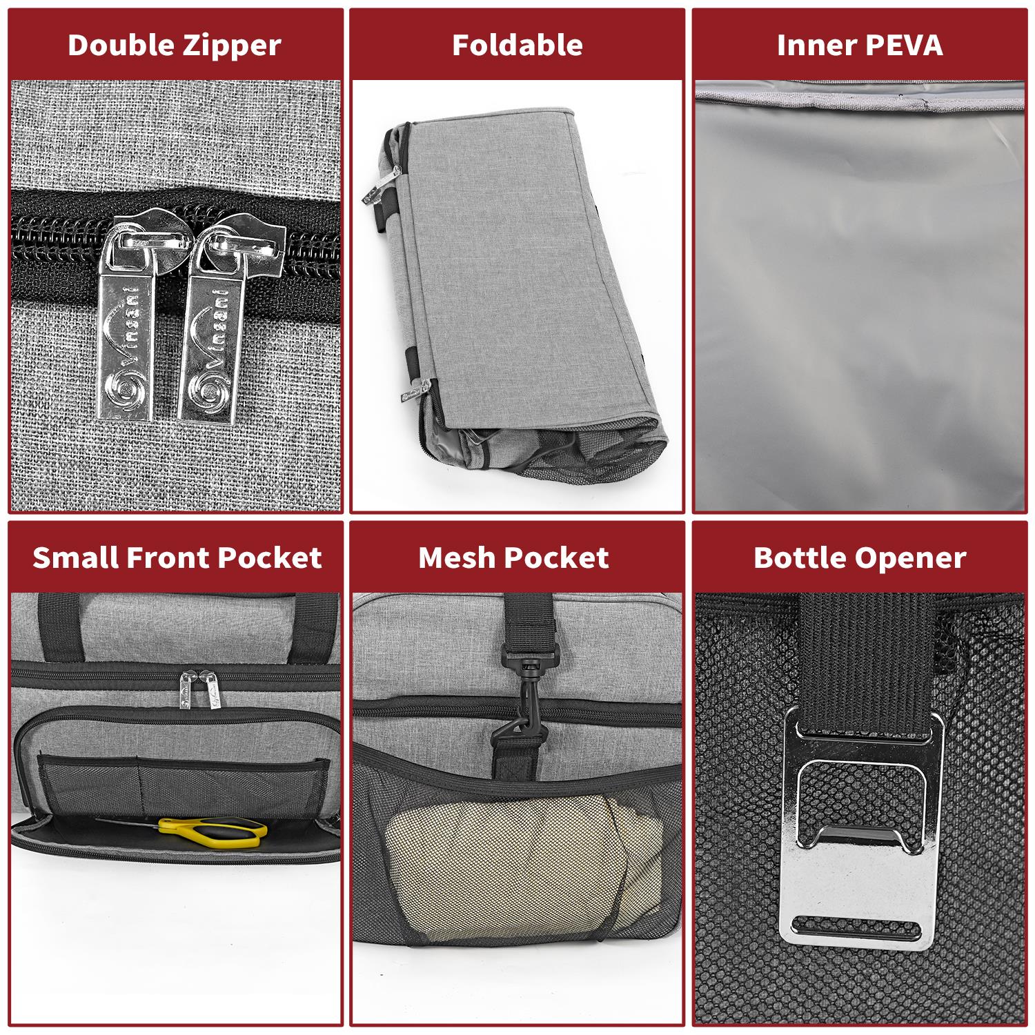 LARGE CAPACITY: It is excellent for camping, hiking, BBQs, the beach, and other outdoor vacation activities since it is large enough to hold all the necessities for a family picnic while remaining compact. Has a padded handle and a detachable shoulder strap that offers multiple carrying ways and allows for the effortless carrying of heavy things. It may also be folded flat for convenient storage.